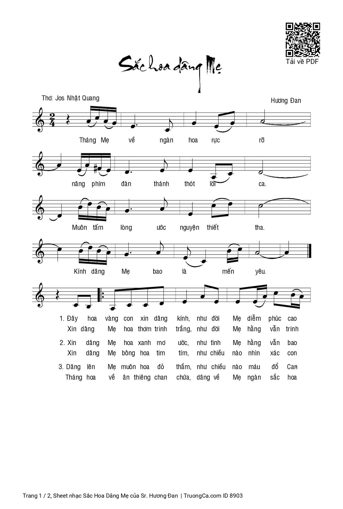 Các sheet PDF cùng tên Sắc Hoa Dâng Mẹ: