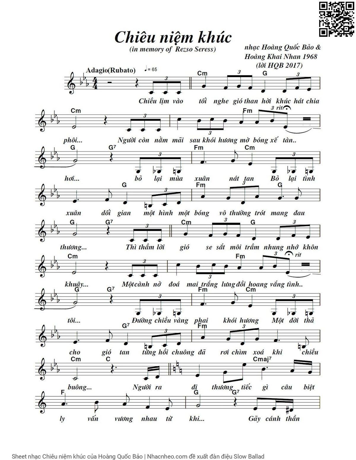Hoàng Quốc Bảo Chiều lịm vào tối nghe gió than hời khúc hát chia phôi [PDF] [Sheet] [Lời H.A] [Mp4/Midi]