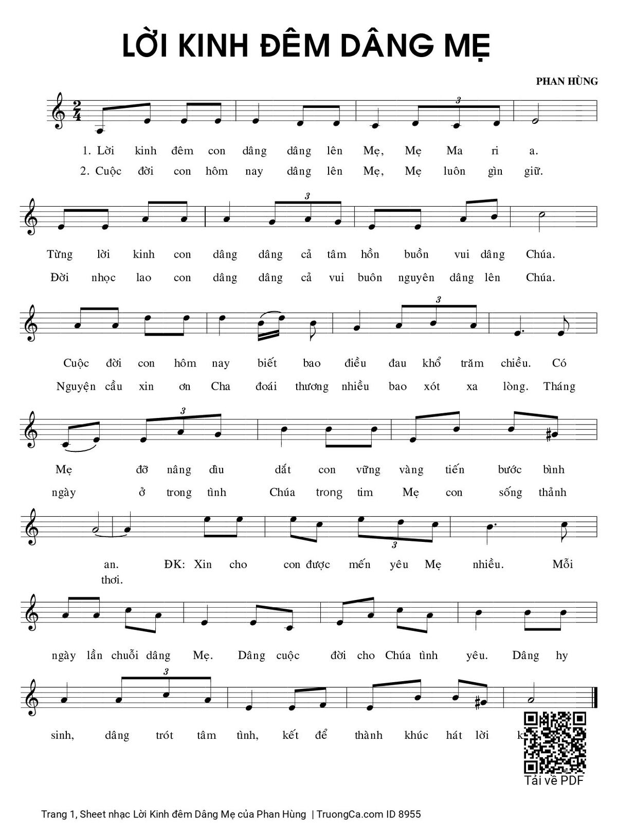 Các sheet PDF tương tự Lời Kinh đêm Dâng Mẹ: