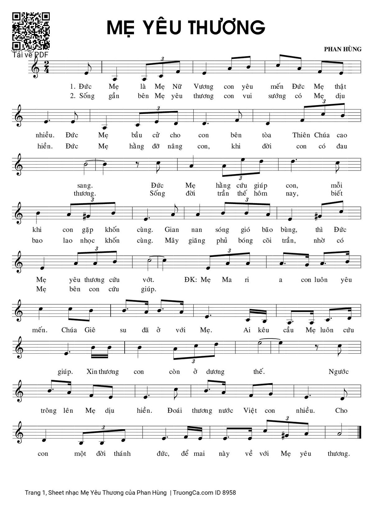 Các sheet PDF tương tự Mẹ Yêu Thương: