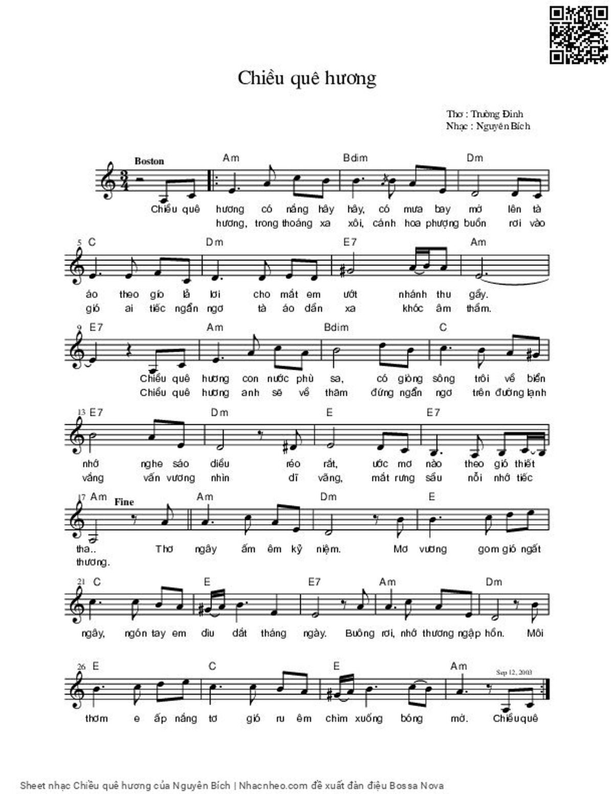 Nguyên Bích Chiều quê hương có nắng hây hây có mưa bay mờ lên tà áo [PDF] [Sheet] [Lời H.A] [Mp4/Midi]