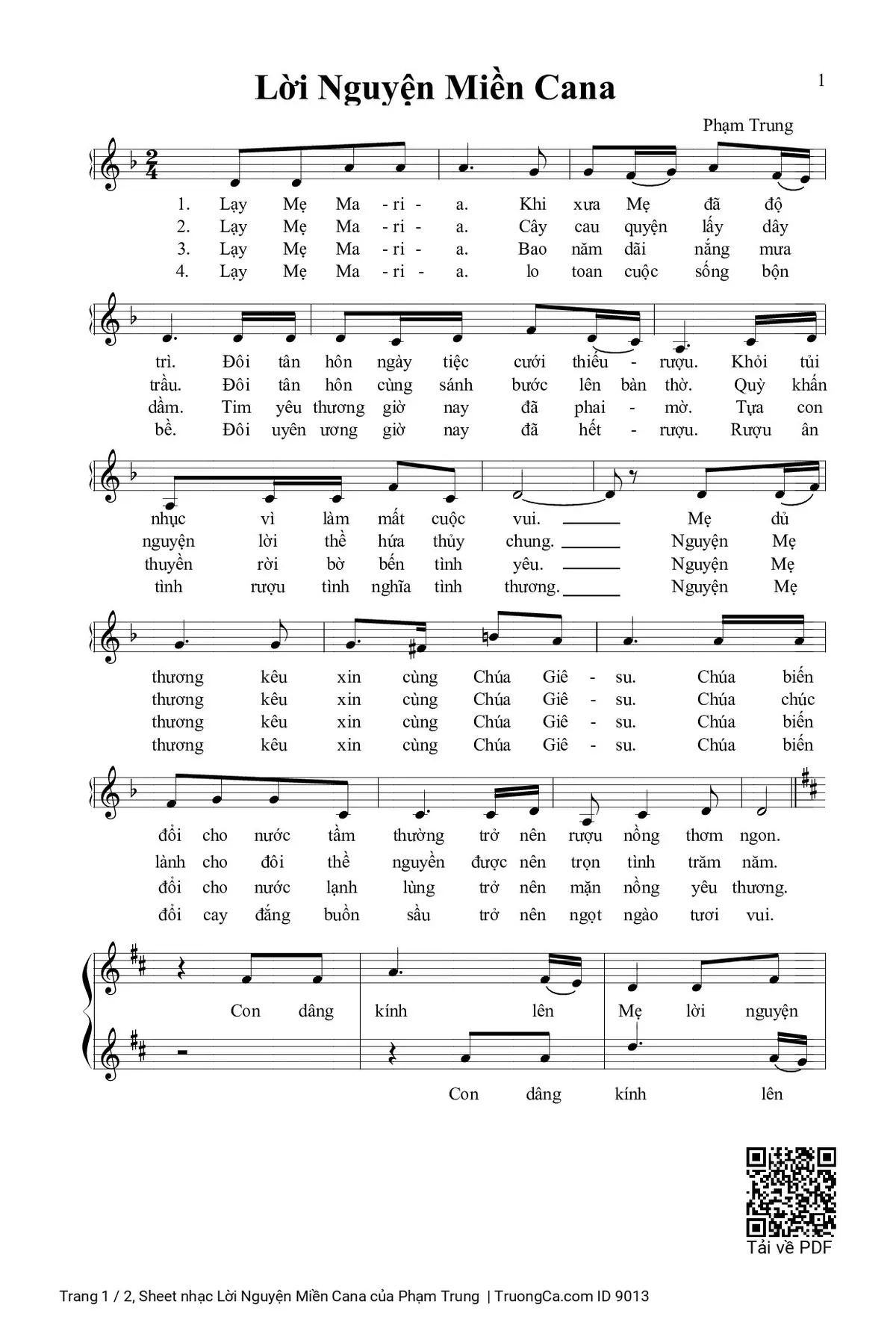 Các sheet PDF tương tự Lời Nguyện Miền Cana: