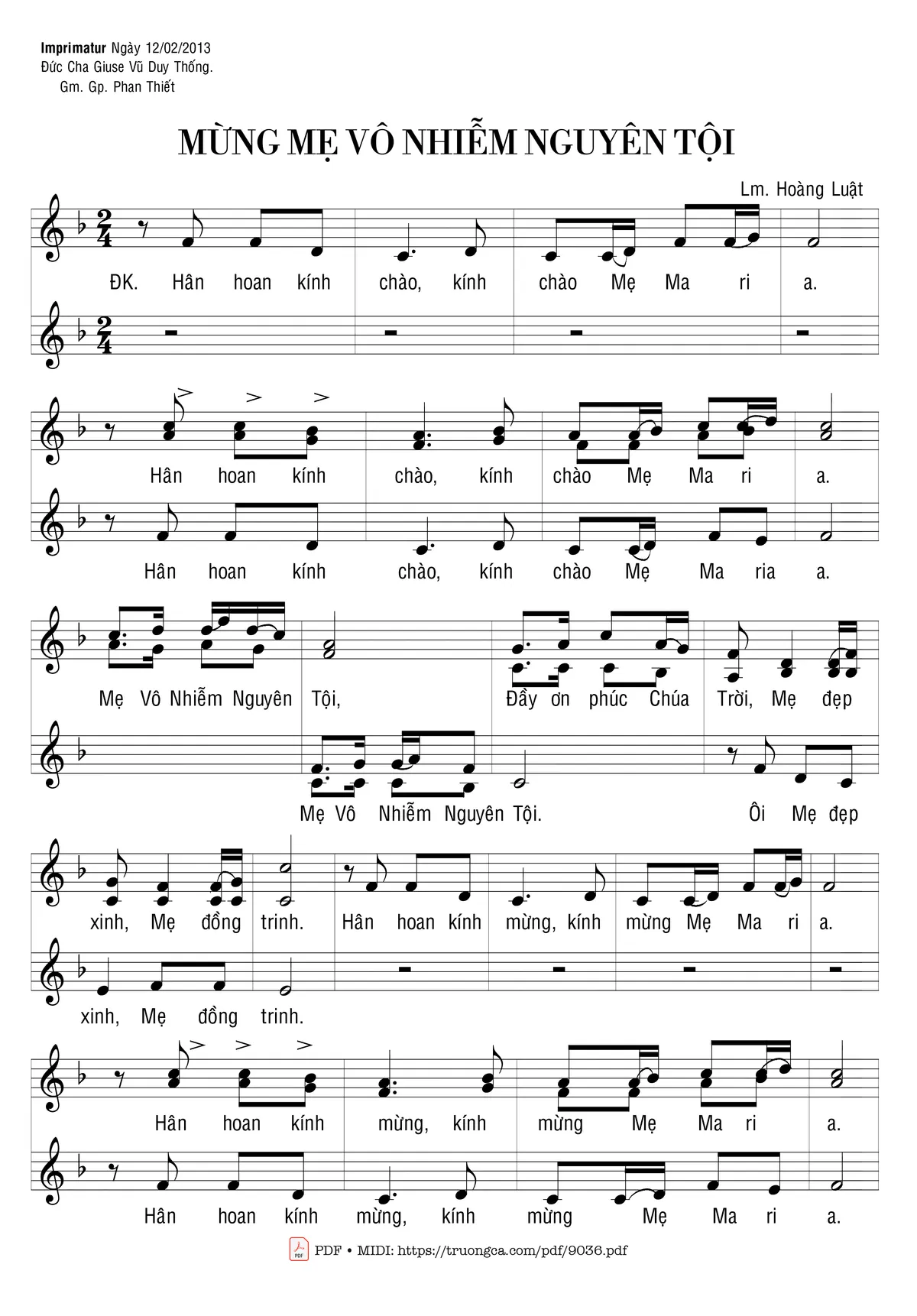 Các sheet PDF tương tự Mừng Mẹ Vô Nhiễm Nguyên Tội: