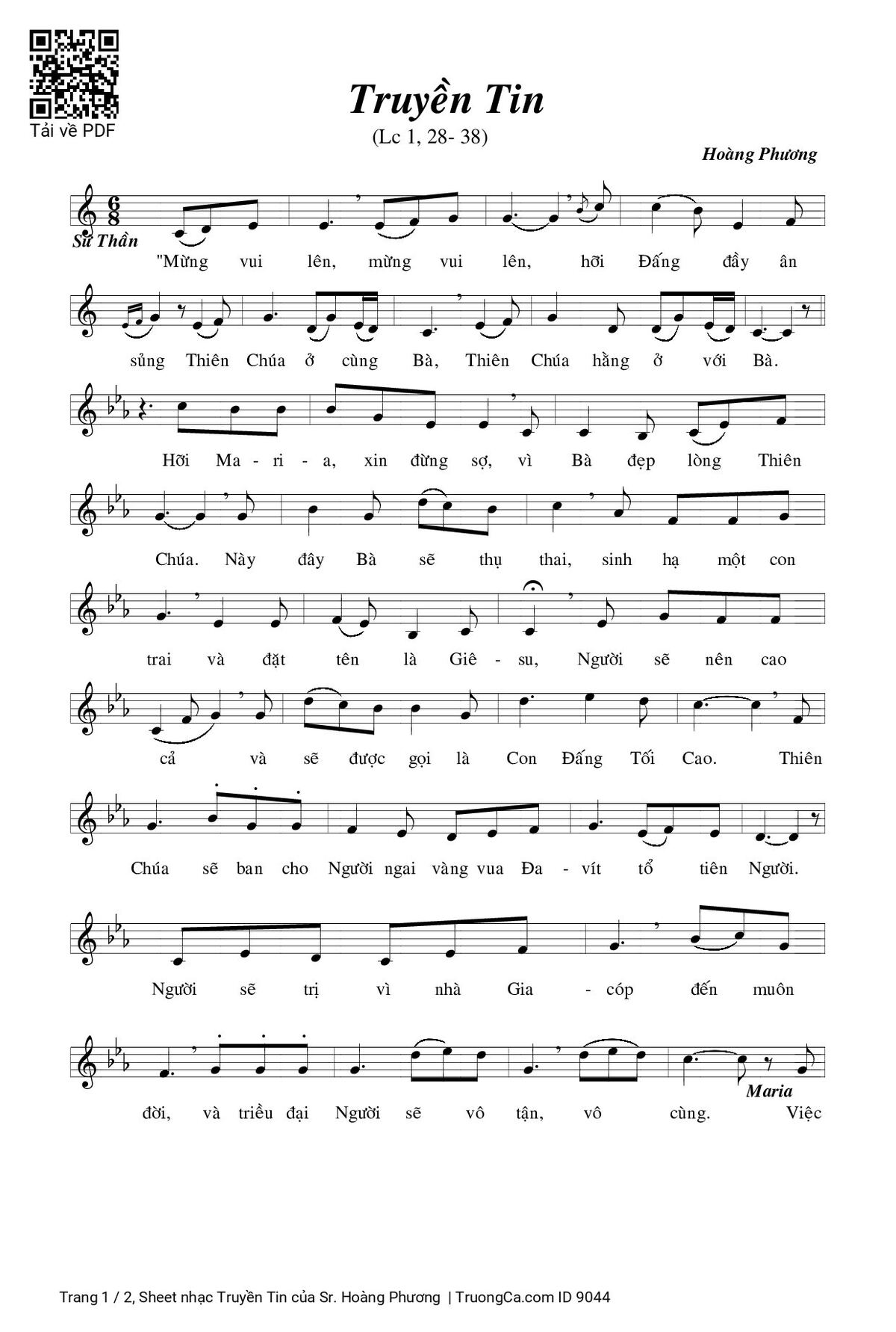 Câu đầu: Sứ Thần Mừng vui lên Mừng vui lên Hỡi Đấng đầy ân sủng