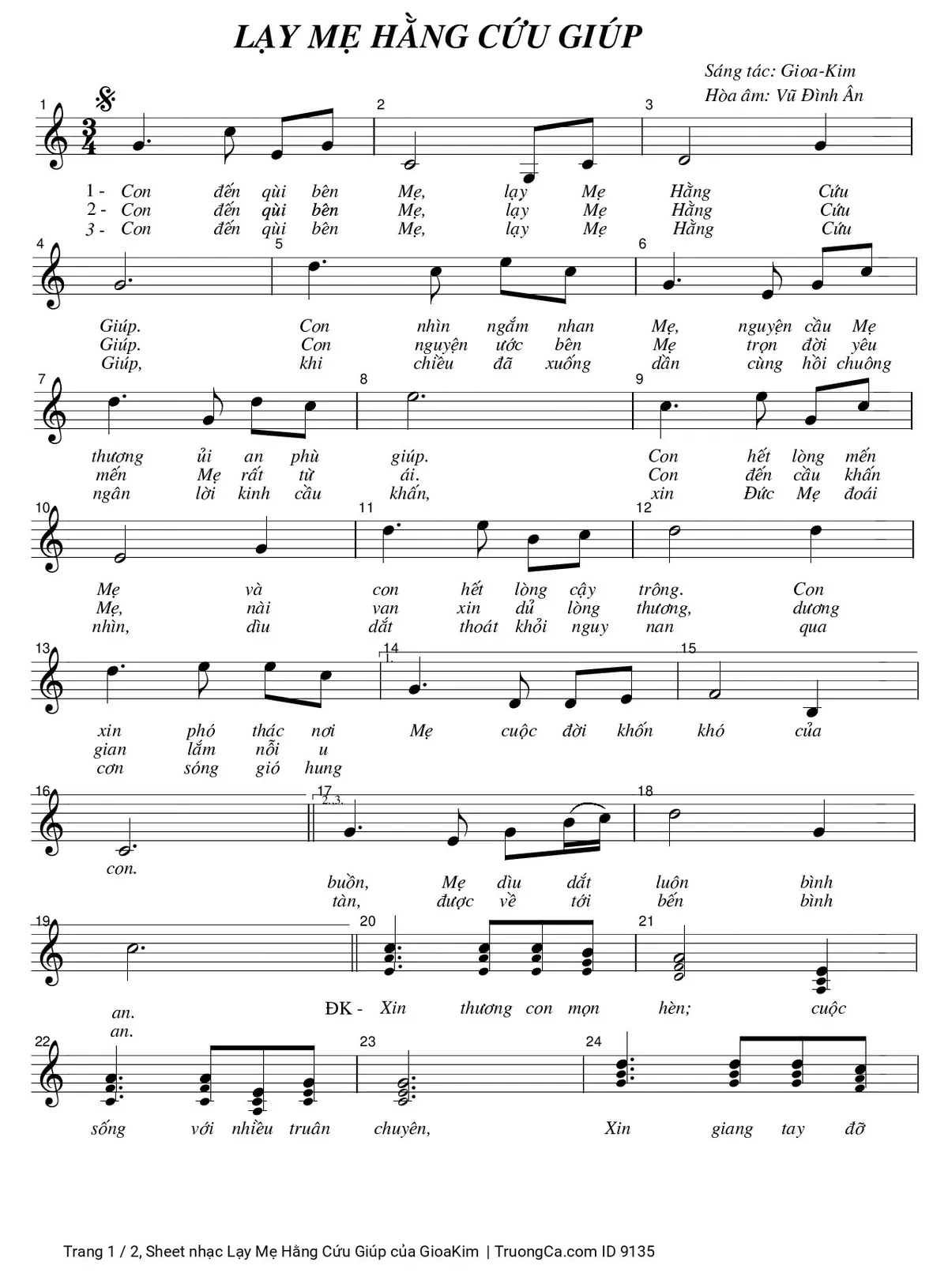 Các sheet PDF tương tự Lạy Mẹ Hằng Cứu Giúp: