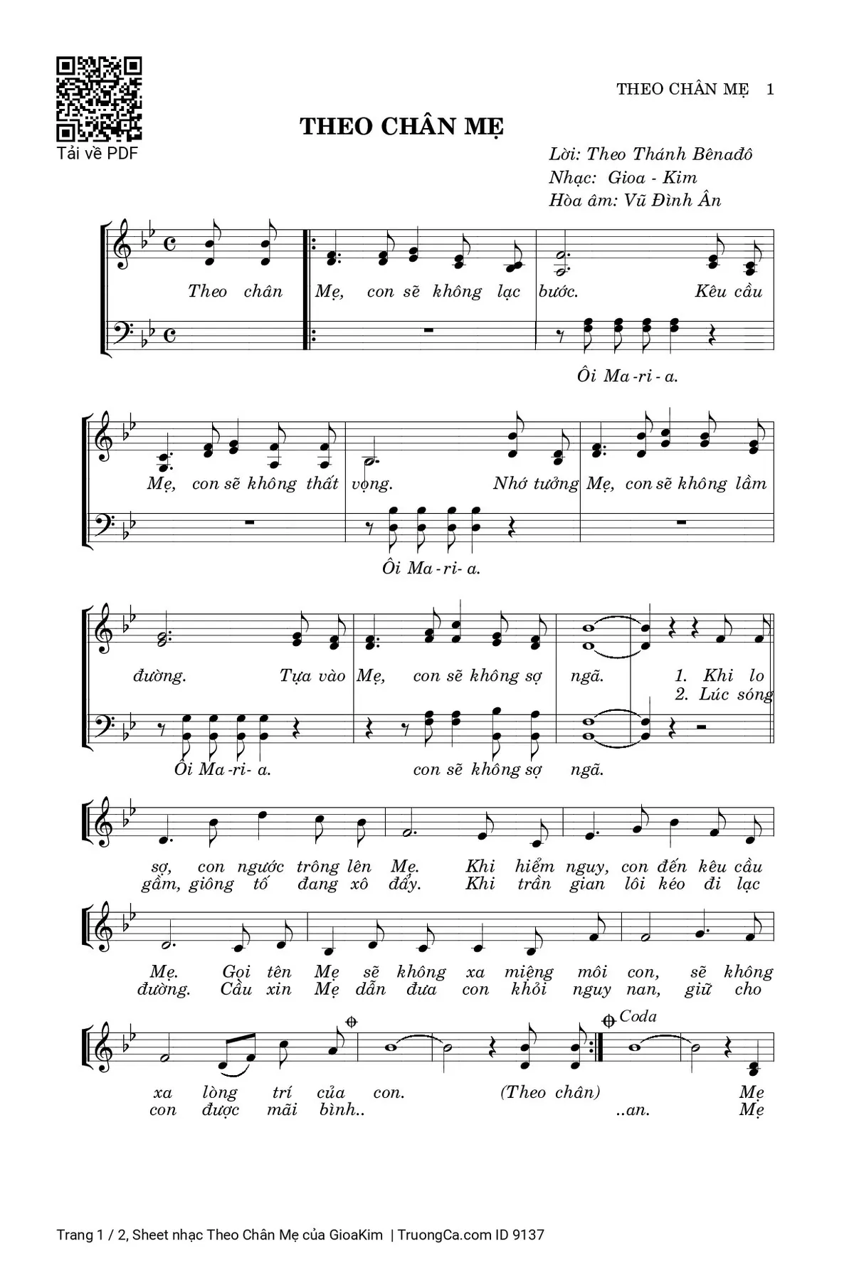 Theo chân Mẹ con sẽ không lạc bước (Ôi Maria) Kêu cầu mẹ con sẽ không thất vọng (Ôi Maria) Nhớ tưởng Mẹ con sẽ không lầm đường (Ôi Maria) Tựa vào Mẹ con sẽ không sợ ngã
