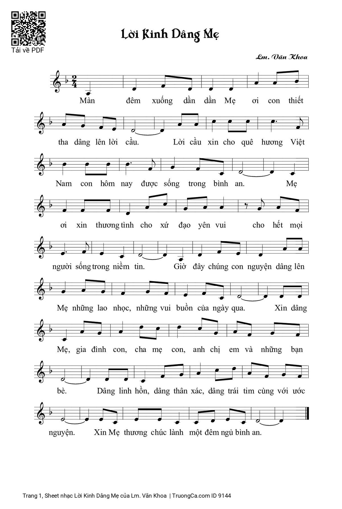 Các sheet PDF tương tự Lời Kinh Dâng Mẹ: