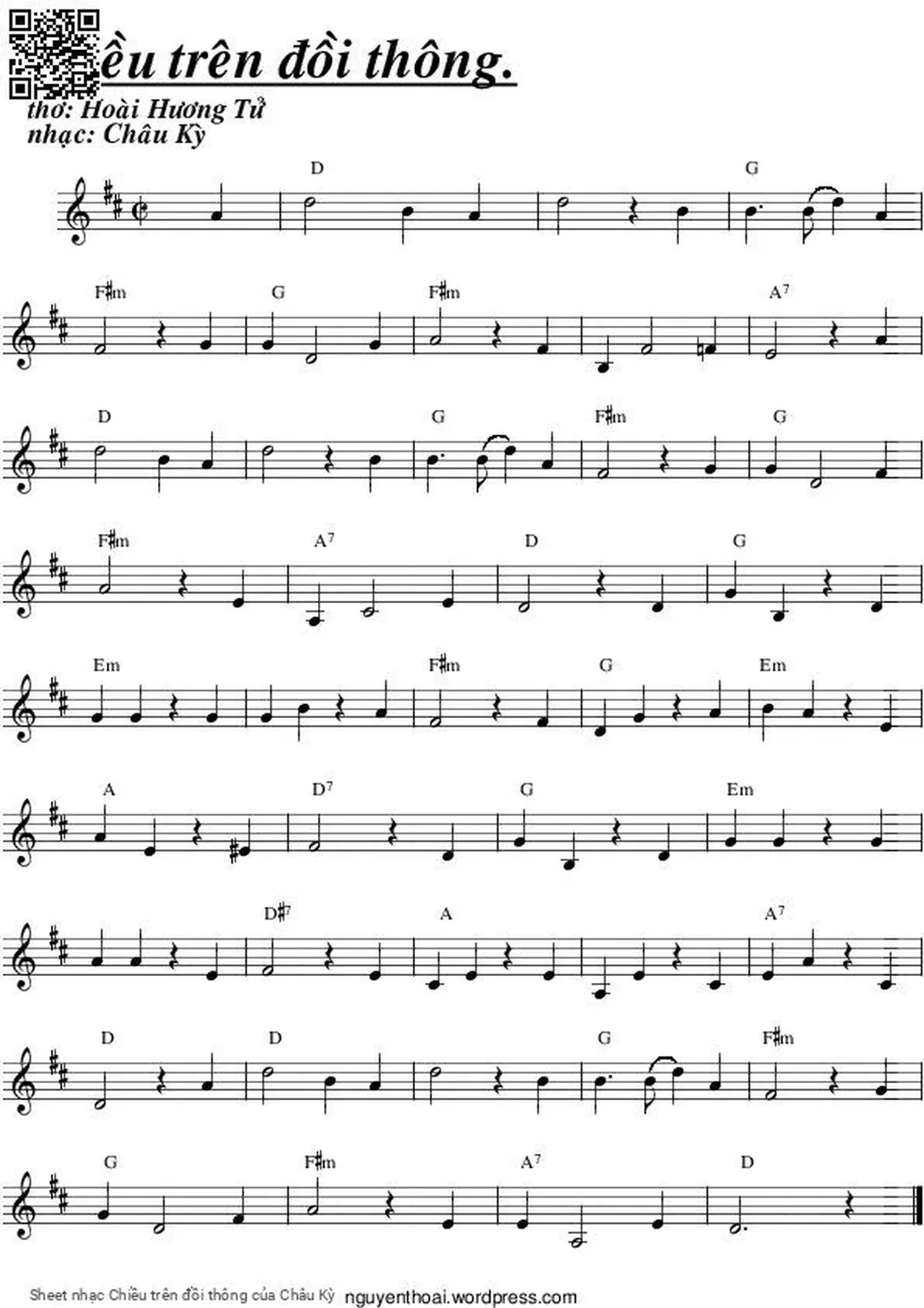 Châu Kỳ Chiều xưa trên đồi thông Ta đi dưới mây hồng [PDF] [Sheet] [Lời H.A] [Mp4/Midi]