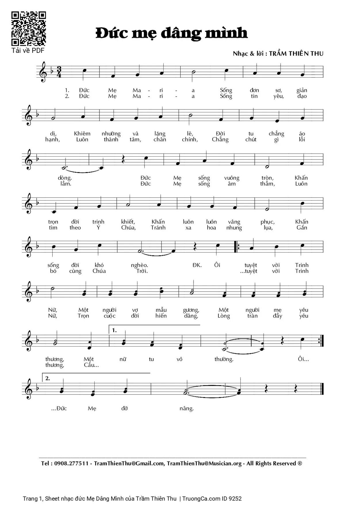 Các sheet PDF tương tự đức Mẹ Dâng Mình: