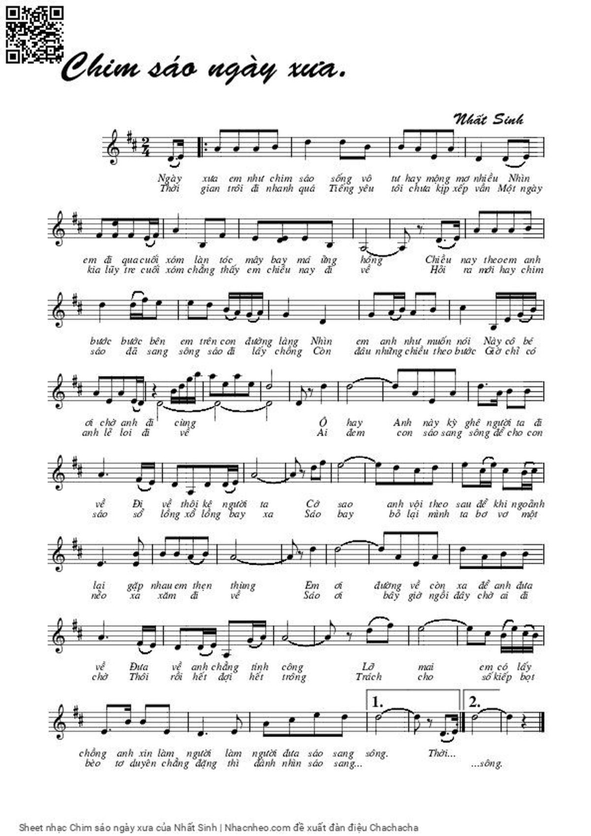 Nhất Sinh Ngày xưa em như chim sáo sống vô tư hay mộng mơ nhiều [PDF] [Sheet] [Lời H.A] [Mp4/Midi]