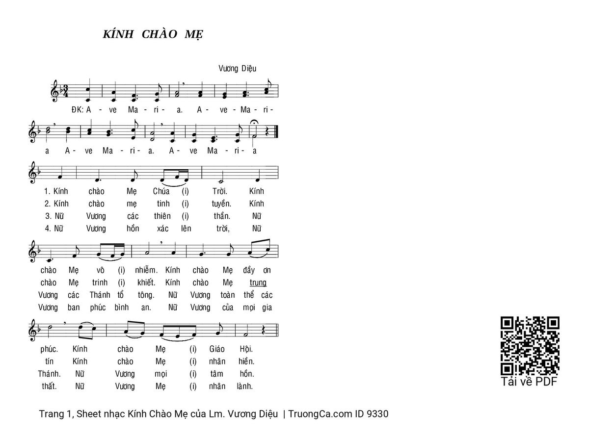 1. Kính chào Mẹ Chúa (i) Trời. Kính chào Mẹ vô (i) nhiễm. Kính chào Mẹ đầy ơn phúc. Kính chào Mẹ (i) Giáo Hội.