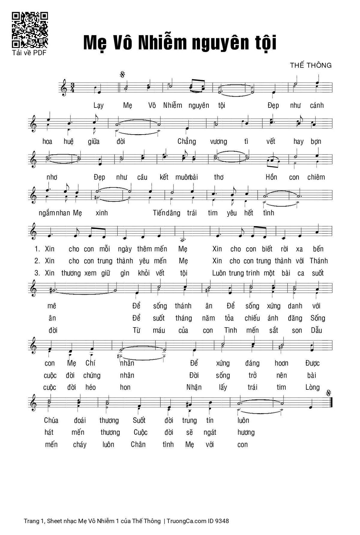 1. Xin cho con mỗi ngày thêm mến Mẹ Xin cho con biết rời xa bến mê Để sống thánh ân Để sống xứng danh với con Mẹ Chí nhân Để xứng đáng hơn Được Chúa đoái thương Suốt đời trung tín luôn