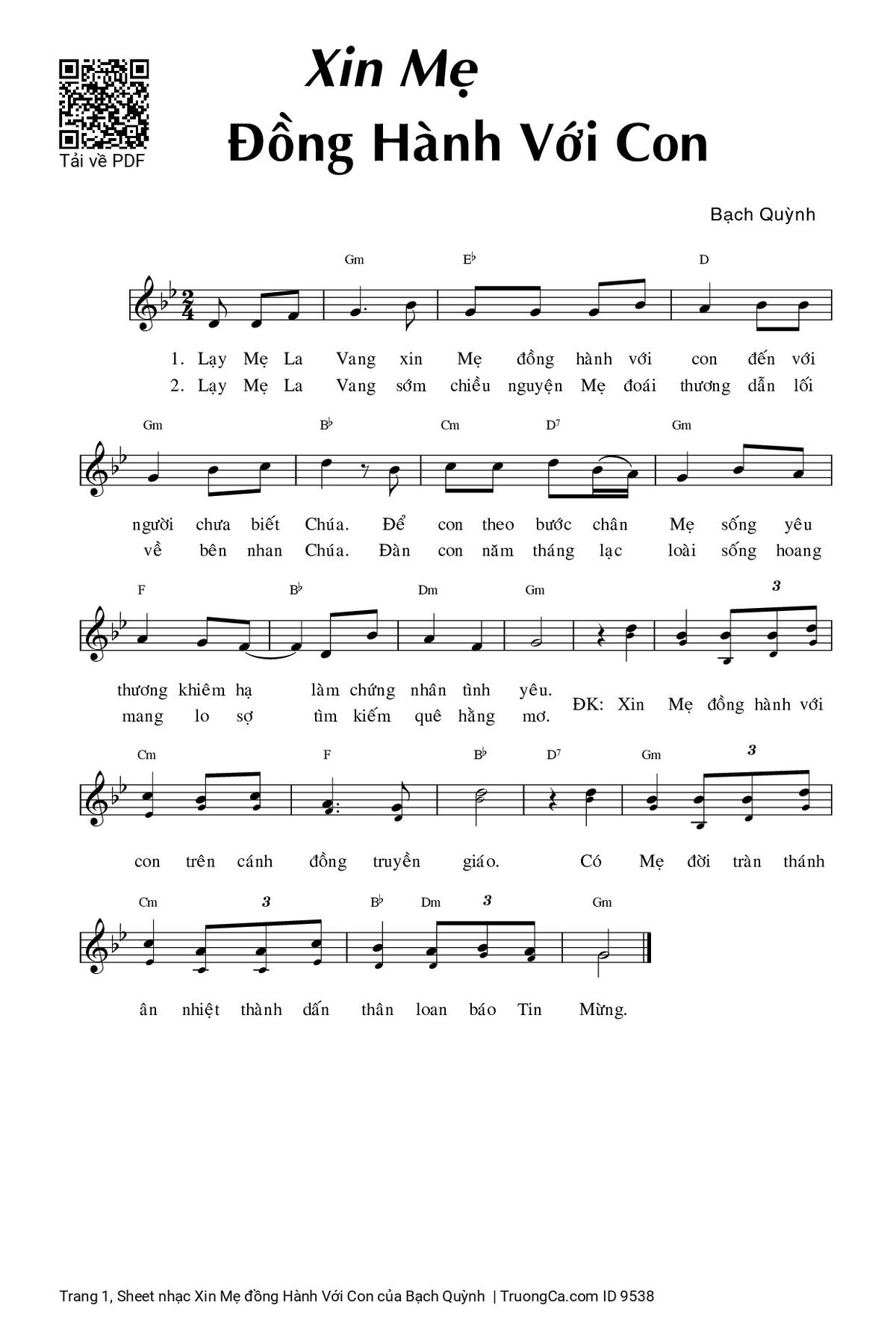 1. Lạy Mẹ La Vang xin Mẹ đồng hành với con đến với người chưa biết Chúa. Để con theo bước chân Mẹ sống yêu thương khiêm hạ làm chứng nhân tình yêu.