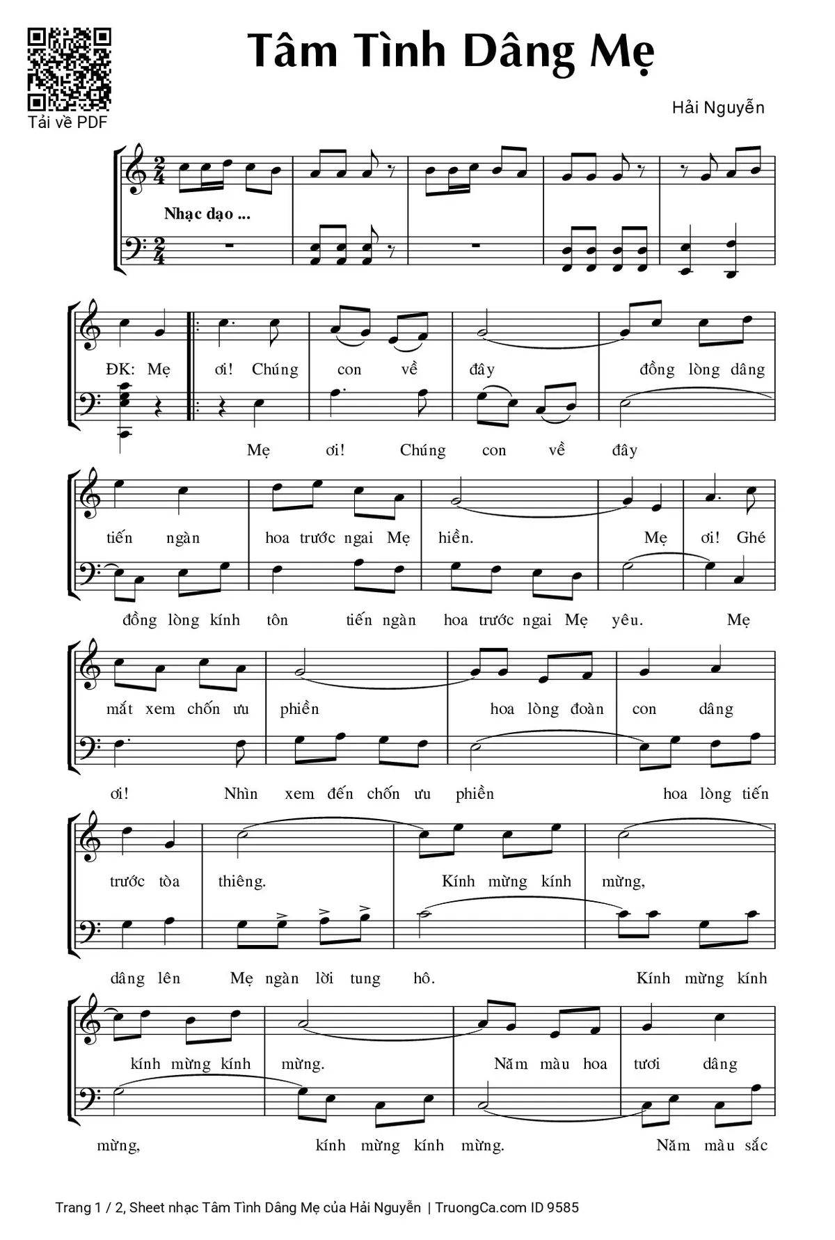 Các sheet PDF cùng tên Tâm Tình Dâng Mẹ: