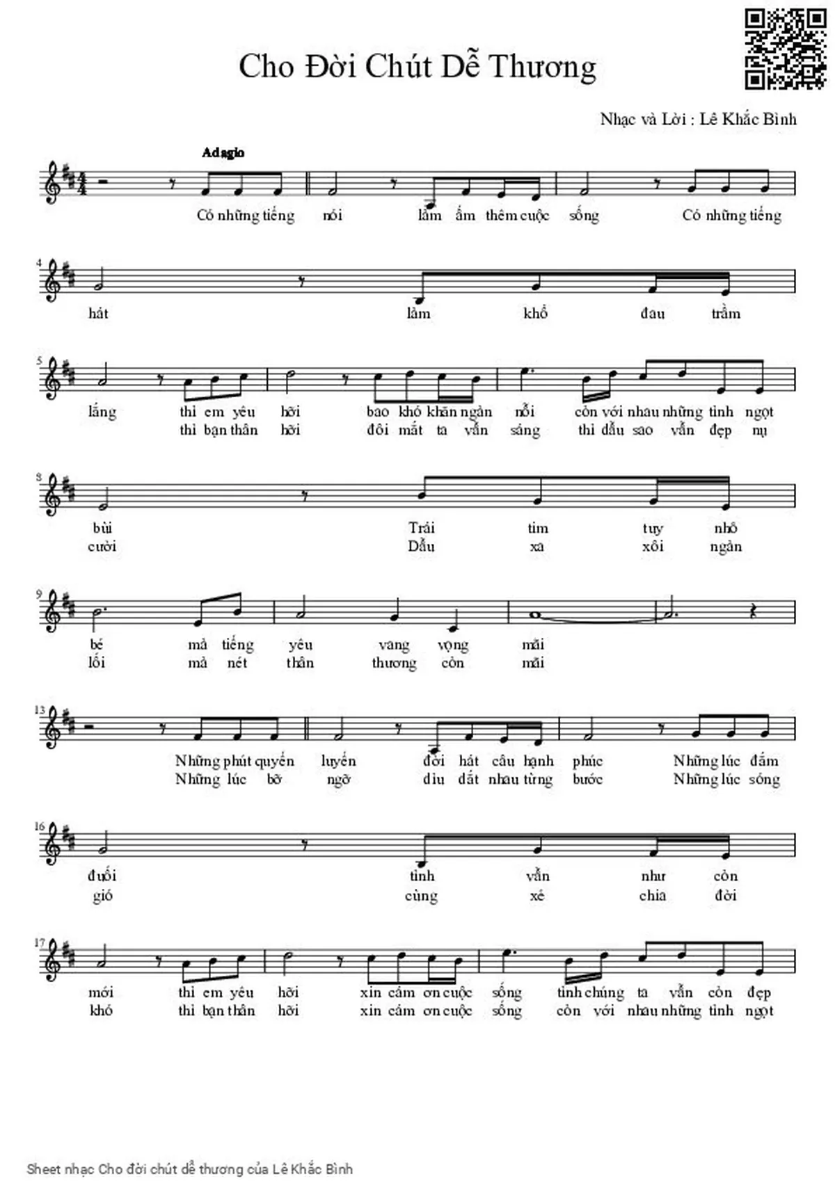 Lê Khắc Bình Có những tiếng nói làm ấm thêm cuộc sống [PDF] [Sheet] [Lời H.A] [Mp4/Midi]