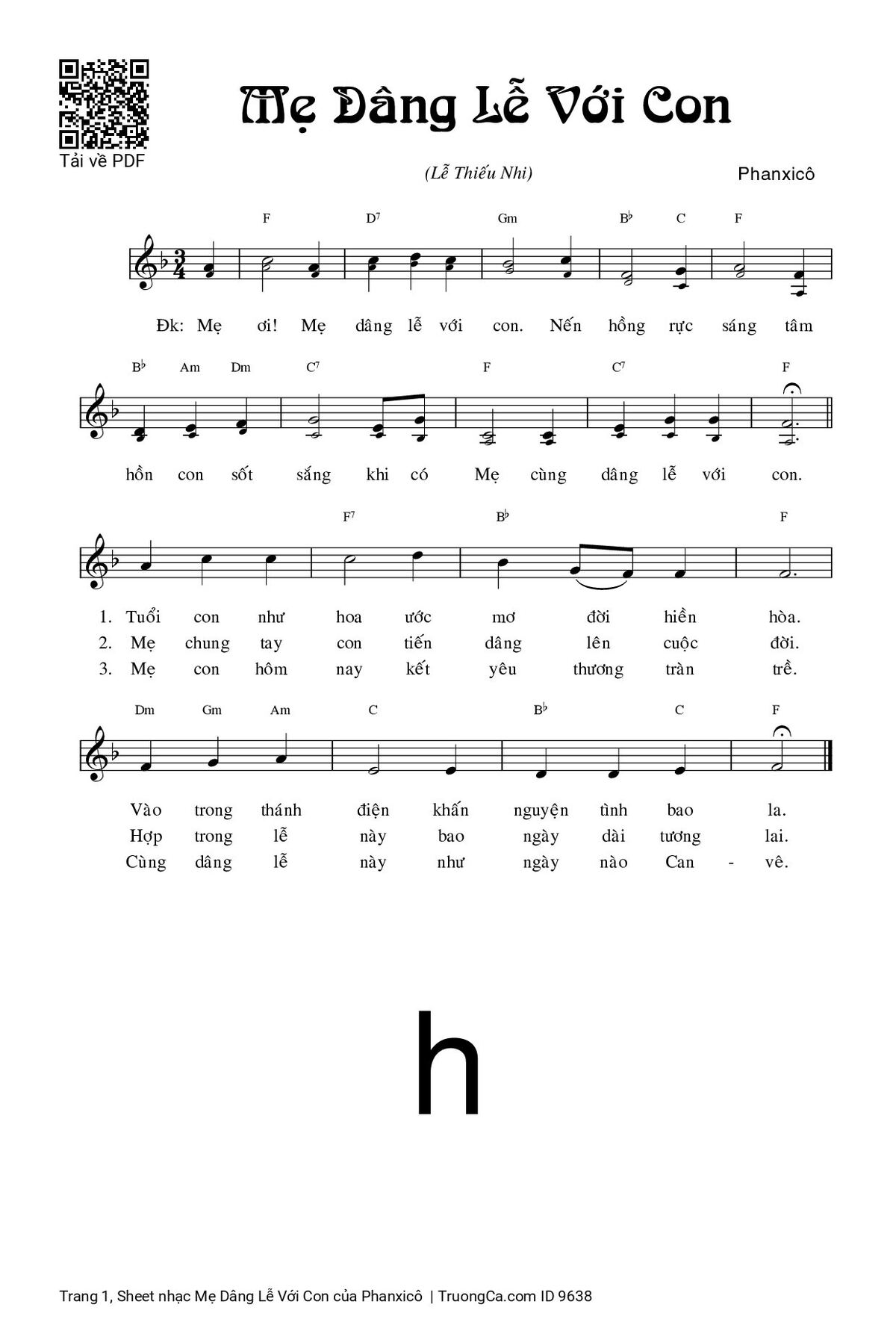 Điệp khúc. Mẹ ơi! Mẹ dâng lễ với con. Nến hồng rực sáng tâm hồn con sốt sắng khi có Mẹ cùng dâng lễ với con.