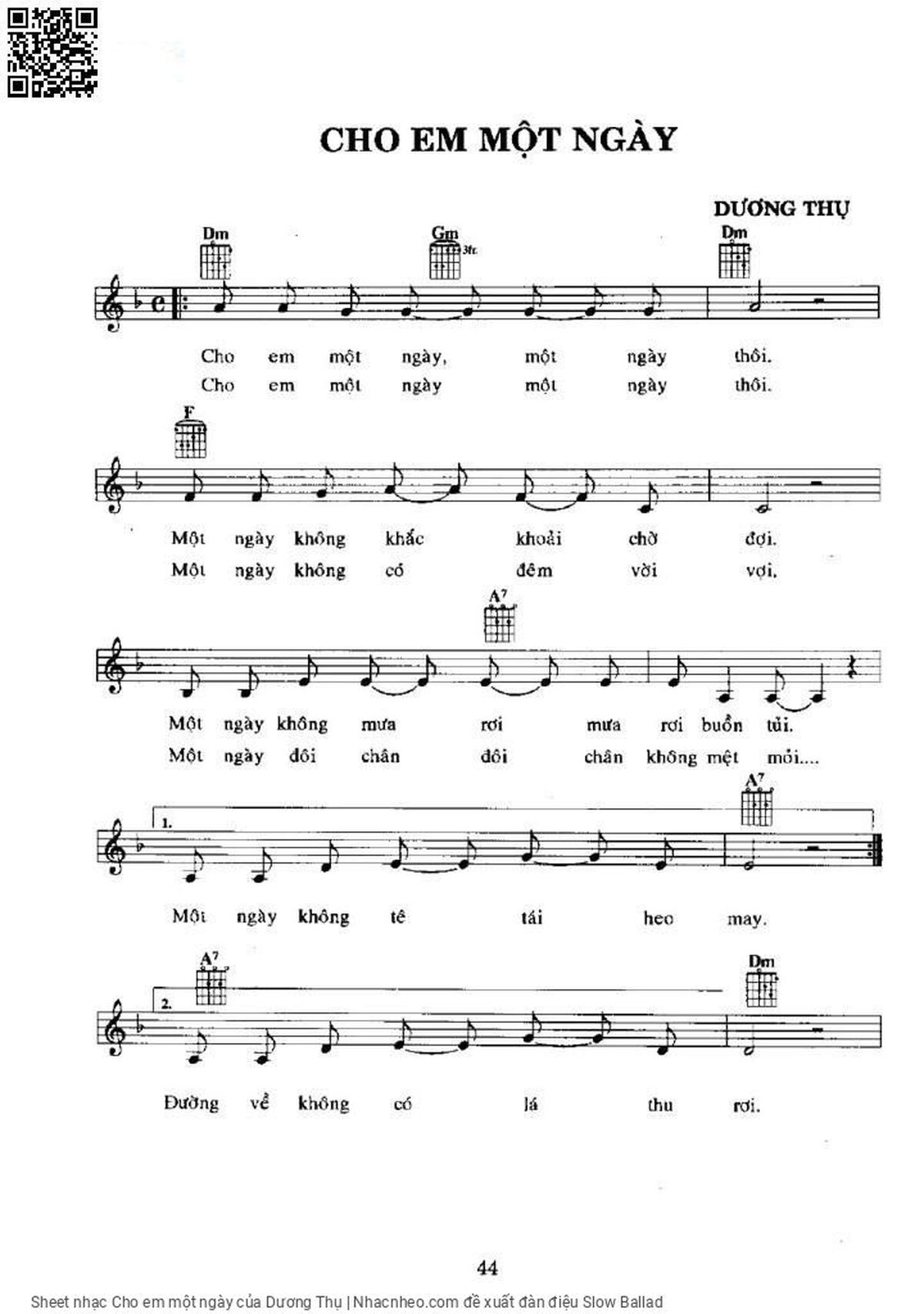 Dương Thụ Cho em một ngày một ngày thôi [PDF] [Sheet] [Lời H.A] [Mp4/Midi] [Lời bình - giai thoại]