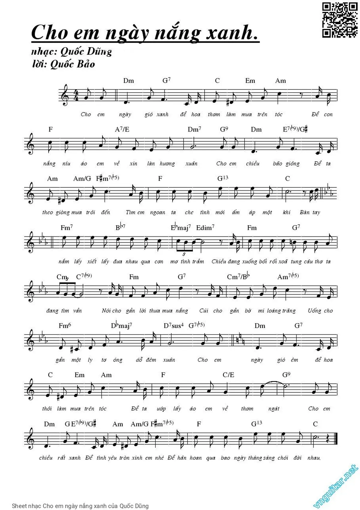 Quốc Dũng Cho em ngày gió xanh để hoa thơm làm mưa trên tóc [PDF] [Sheet] [Lời H.A] [Mp4/Midi]