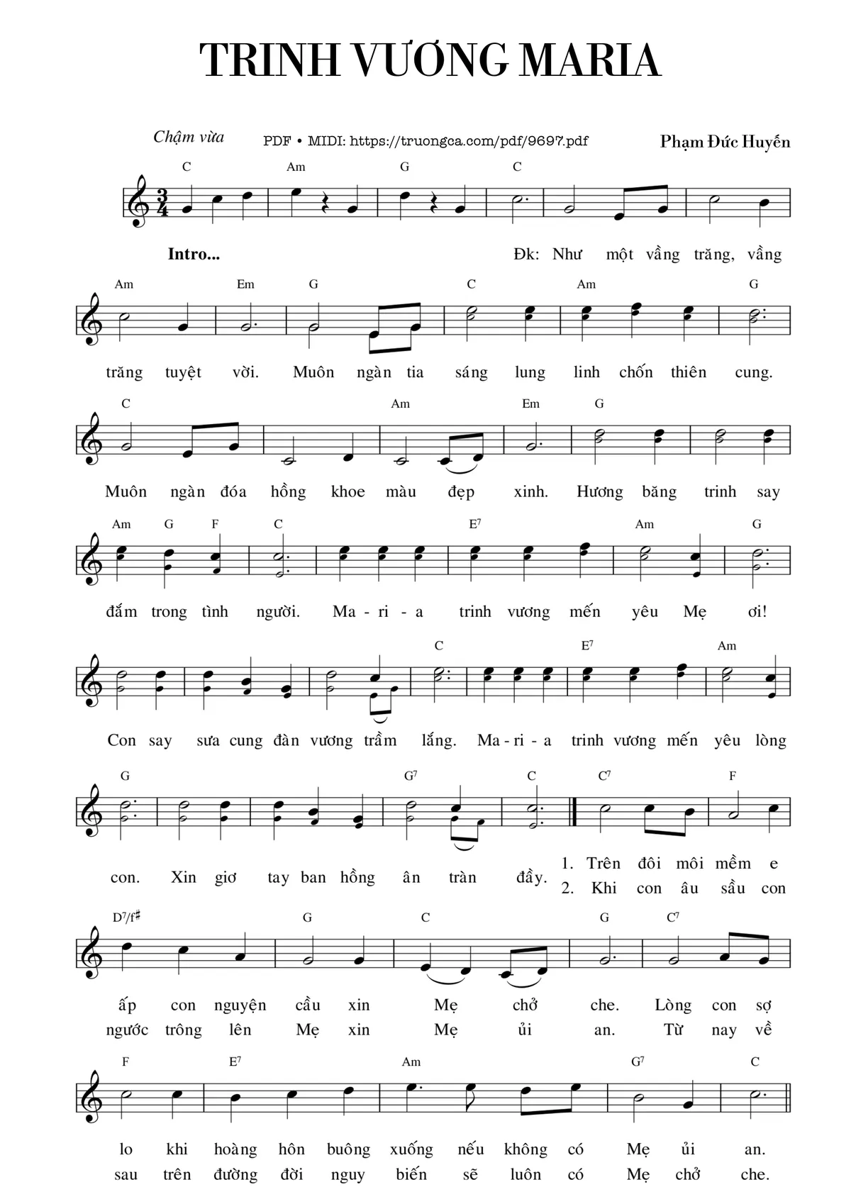 Phạm Đức Huyến Trinh Vương Maria Phạm Đức Huyến Như một vầng trăng [PDF] [Sheet] [Lời H.A] [Mp4/Midi]