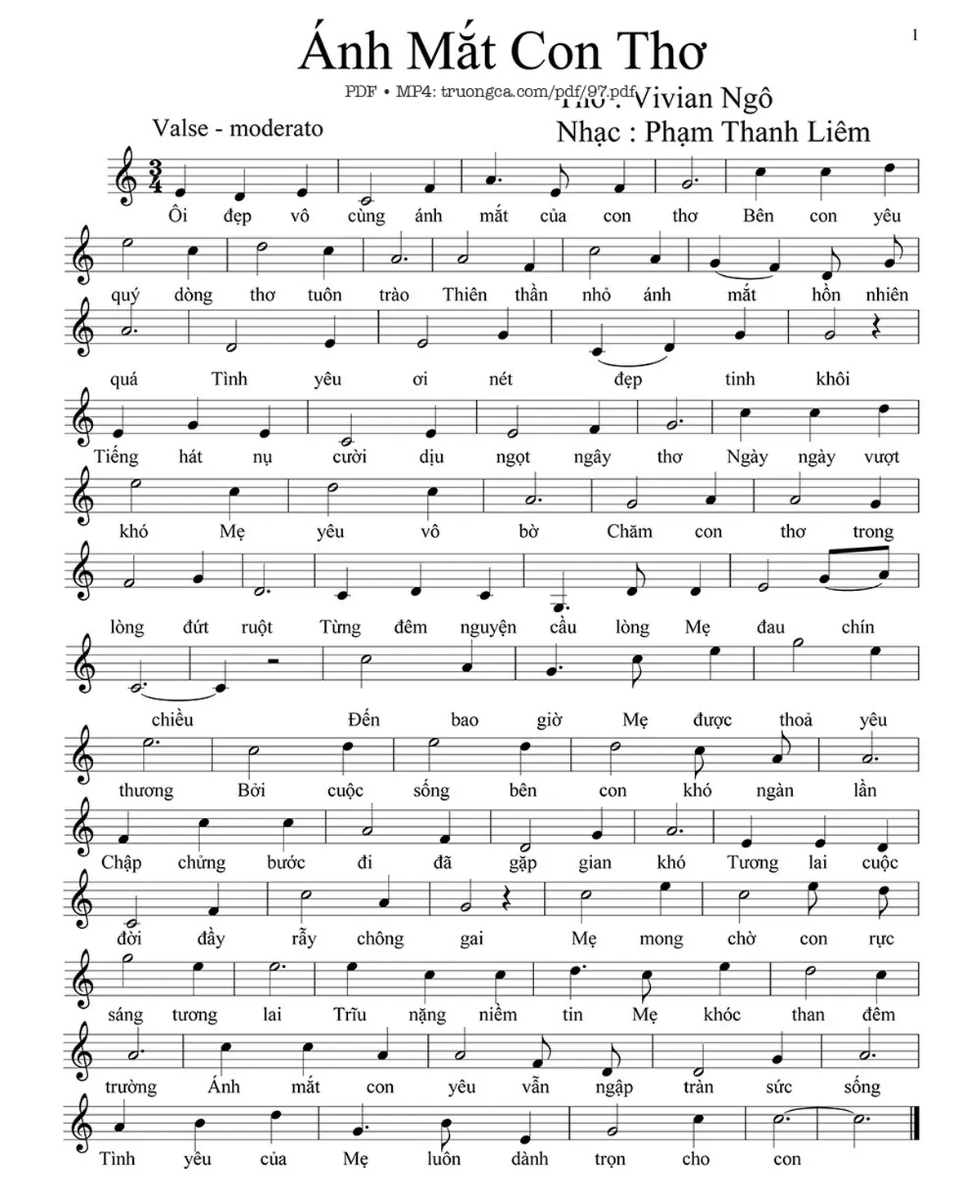 Phạm Thanh Liêm Ôi đẹp vô cùng ánh mắt của con thơ Bên con yêu quý dòng thơ tuôn trào [PDF] [Sheet] [Lời H.A] [Mp4/Midi]