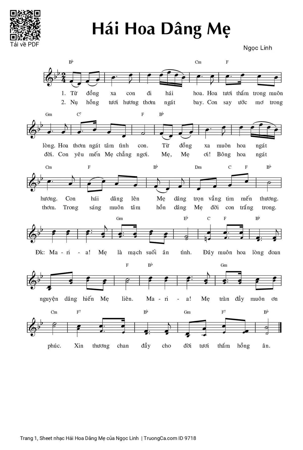 Các sheet PDF cùng tên Hái Hoa Dâng Mẹ: