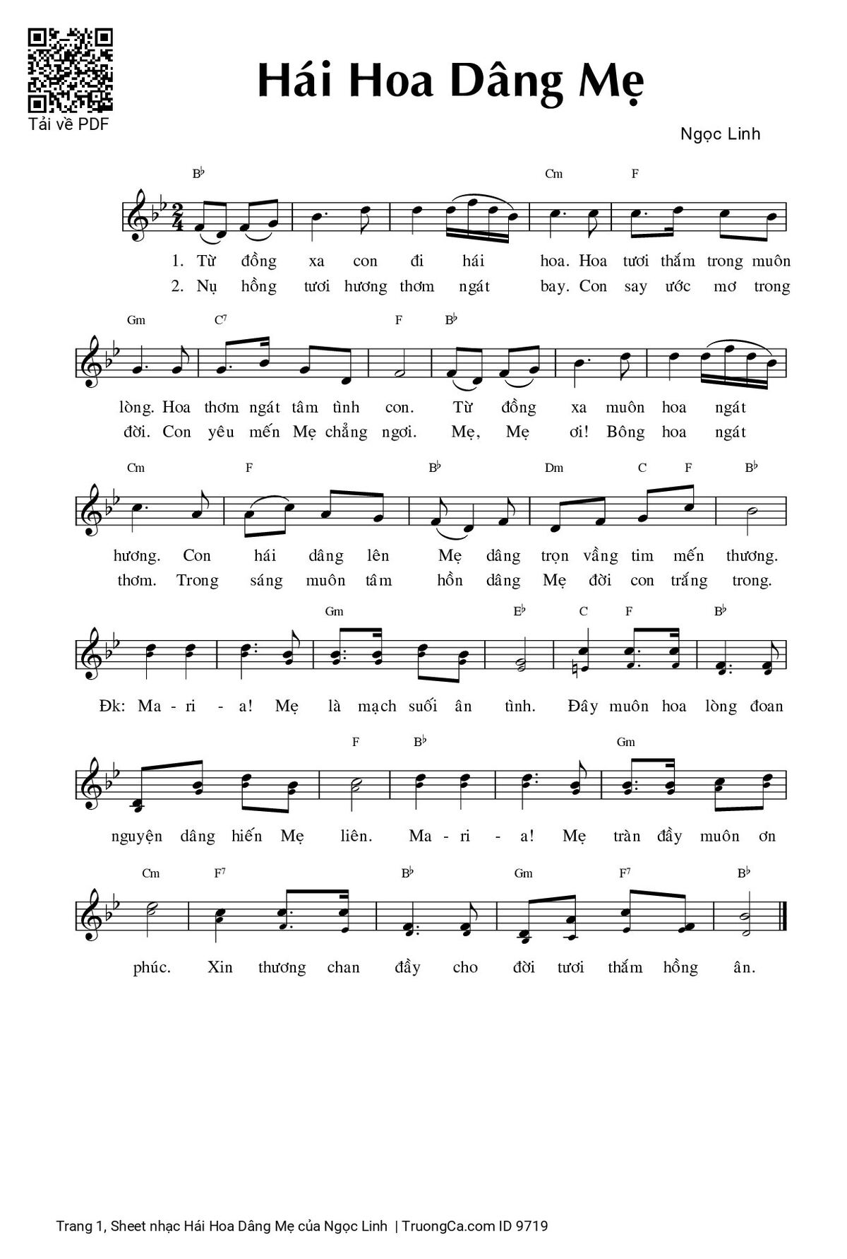 Các sheet PDF cùng tên Hái Hoa Dâng Mẹ: