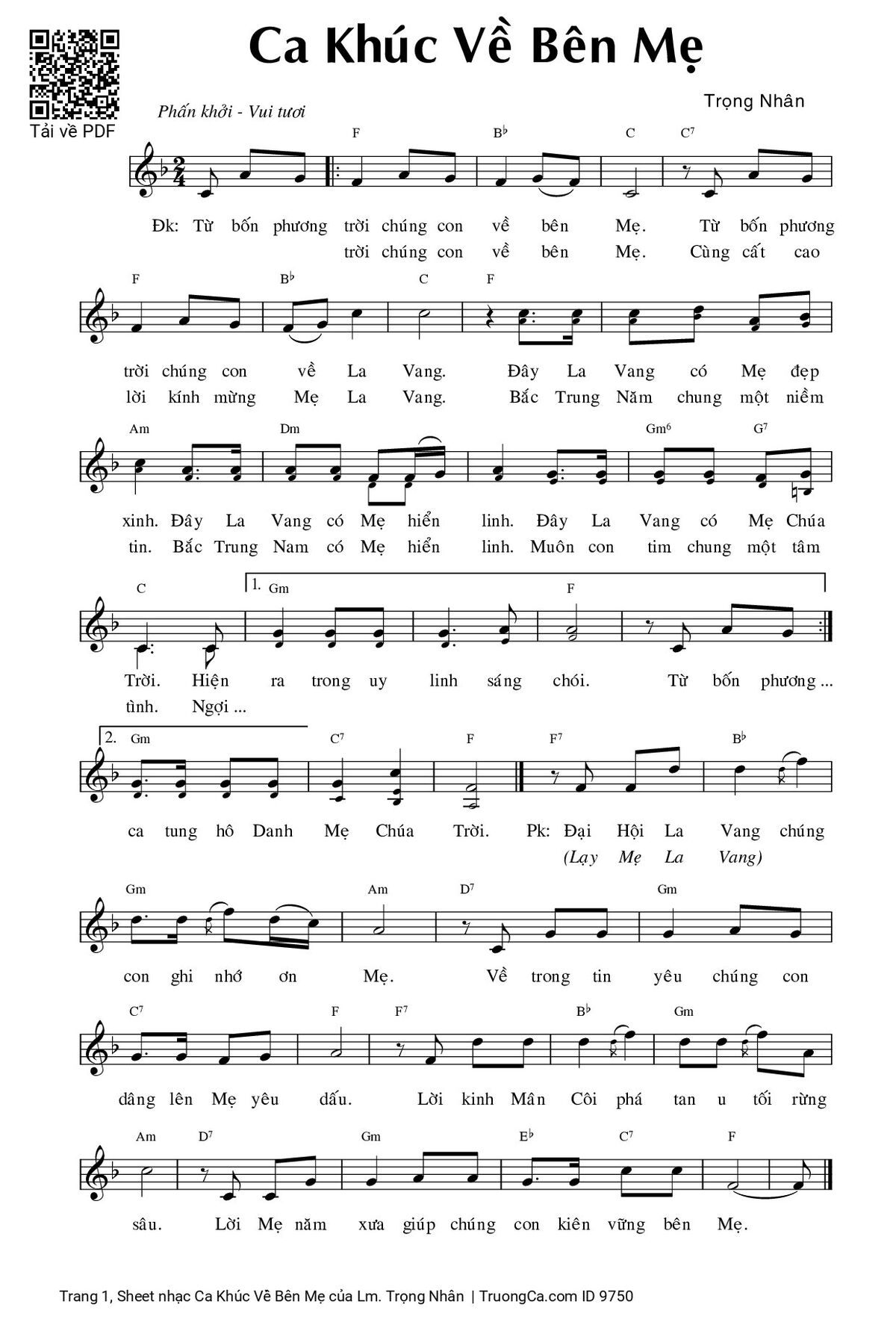 Các sheet PDF tương tự Ca Khúc Về Bên Mẹ: