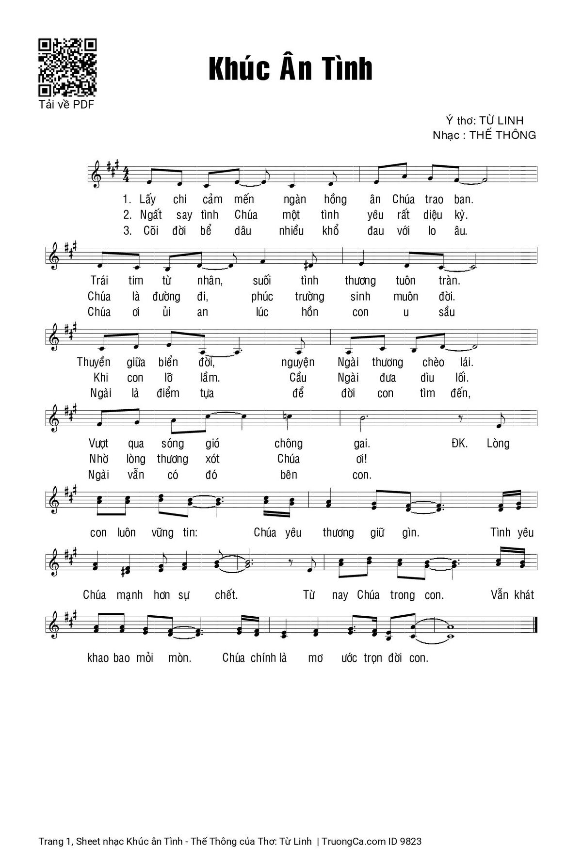 Điệp khúc. Lòng con luôn vững tin: Chúa yêu thương giữ gìn. Tình yêu Chúa mạnh hơn sự chết. Từ nay Chúa trong con. Vẫn khát khao bao mỏi mòn. Chúa chính là mơ ước trọn đời con.