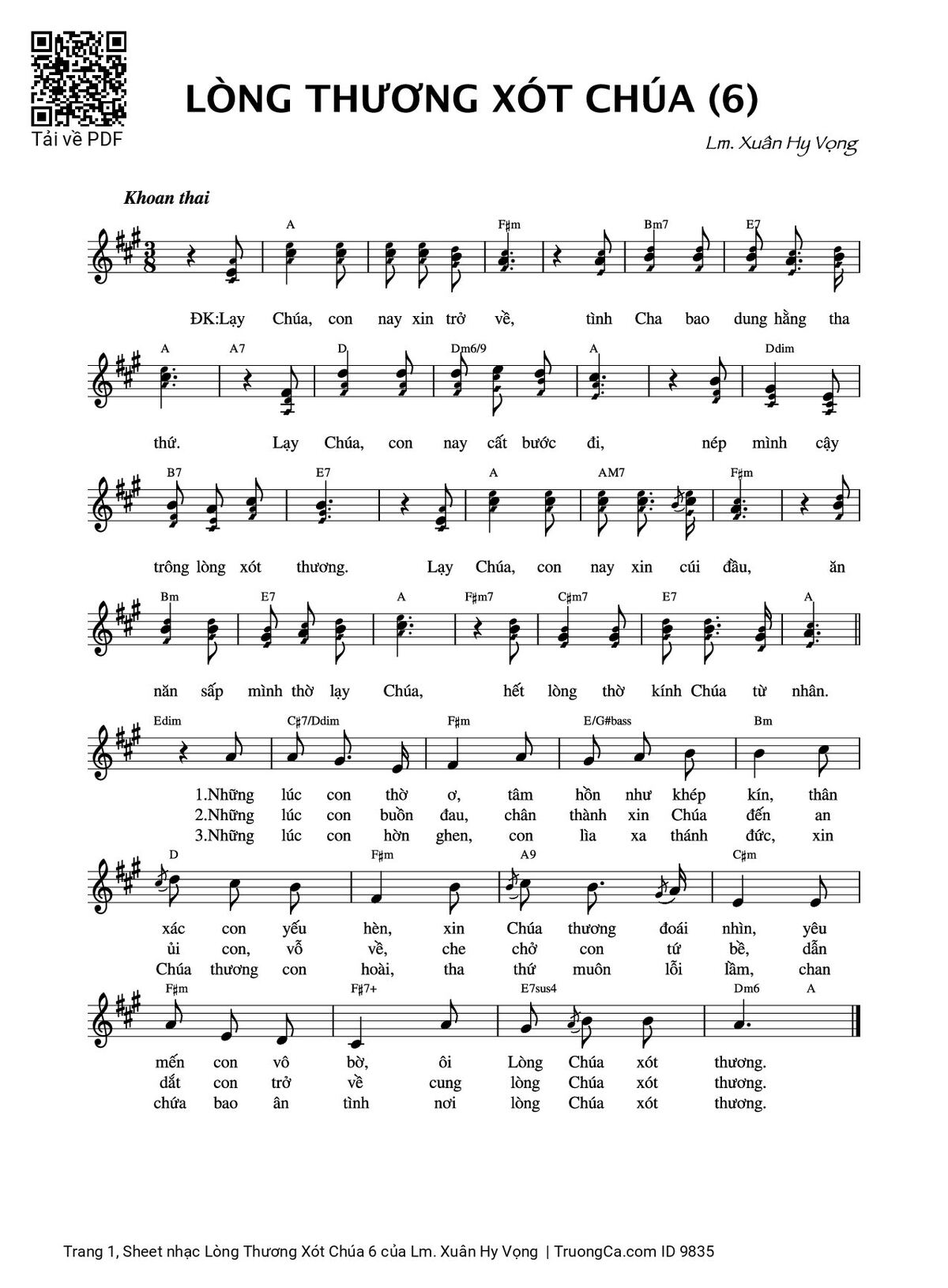 Câu đầu: LÒNG THƯƠNG XÓT CHÚA Tác giả Lm Xuân Hy Vọng