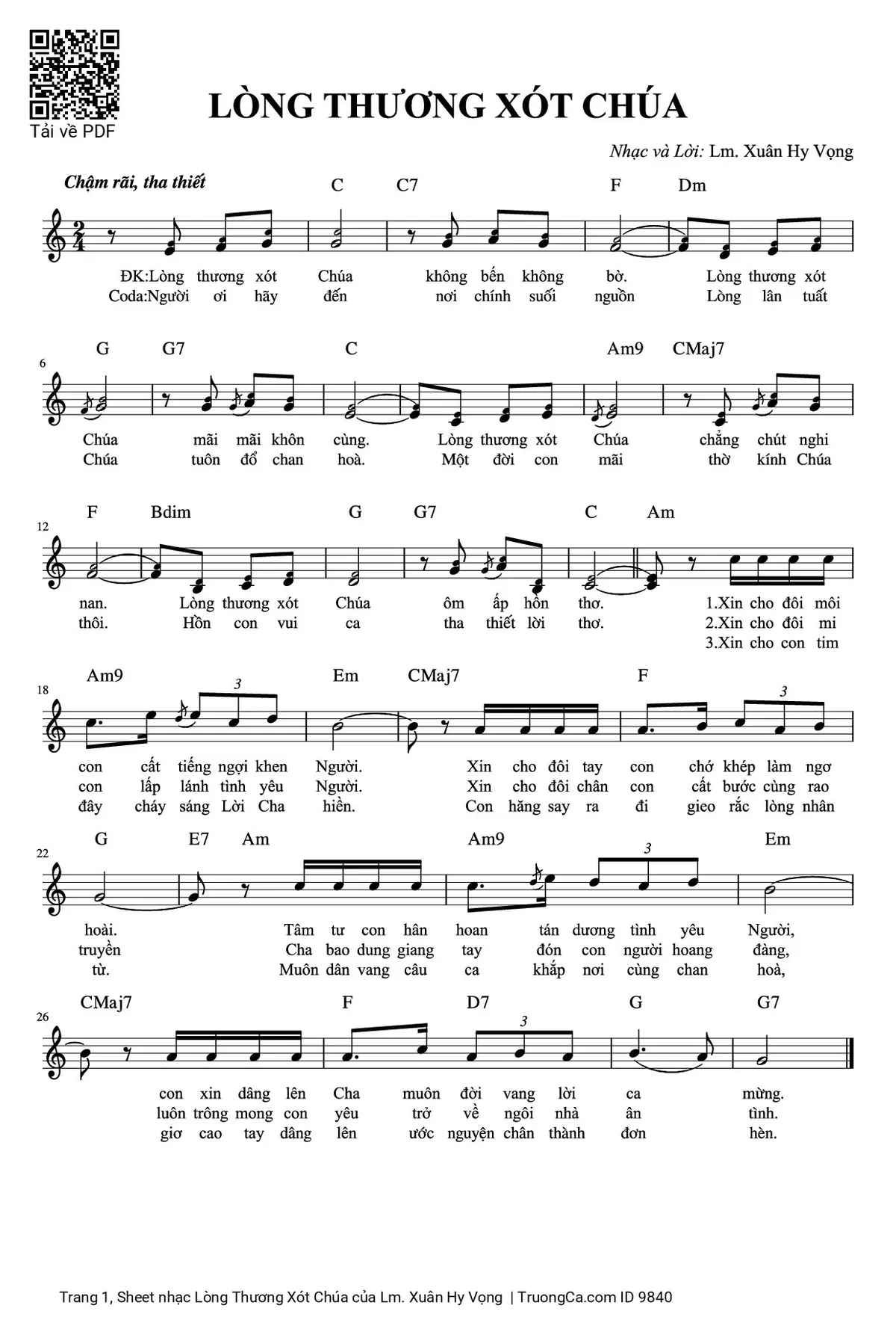 Câu đầu: LÒNG THƯƠNG XÓT CHÚA Tác giả Lm Xuân Hy Vọng