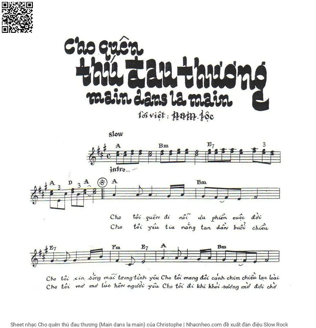 Christophe ndash Cho tôi quên đi nỗi ưu phiền [PDF] [Sheet] [Lời H.A] [Mp4/Midi]