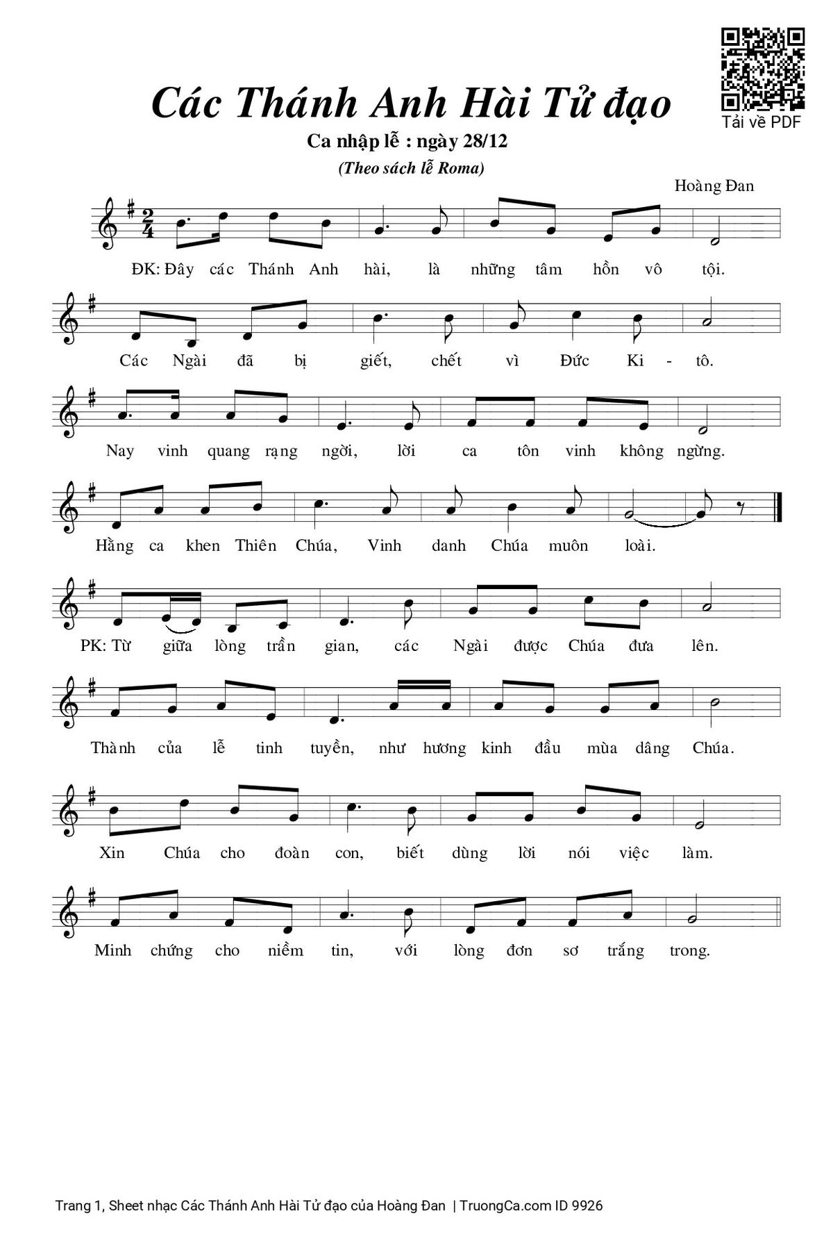 Các sheet PDF tương tự Các Thánh Anh Hài Tử đạo: