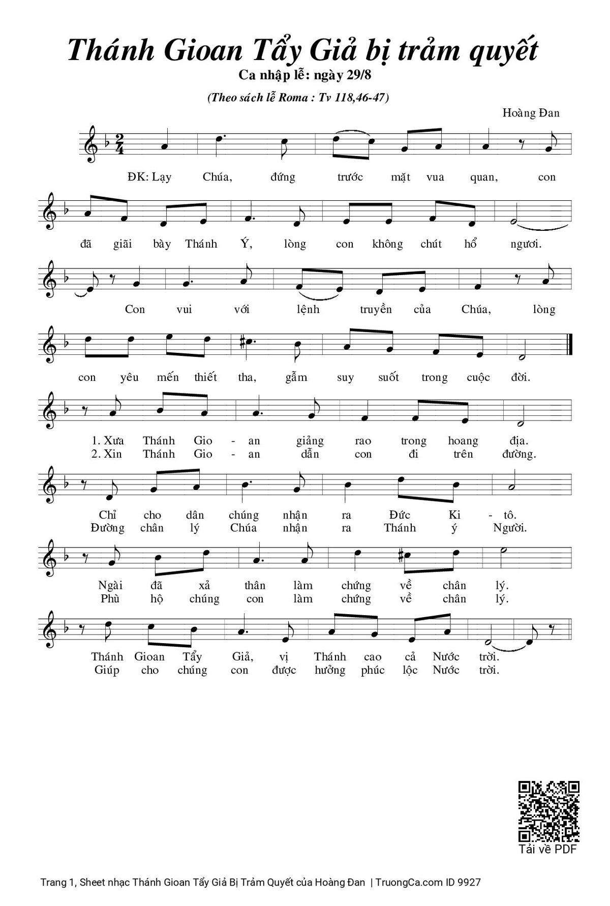 Các sheet PDF tương tự Thánh Gioan Tẩy Giả Bị Trảm Quyết: