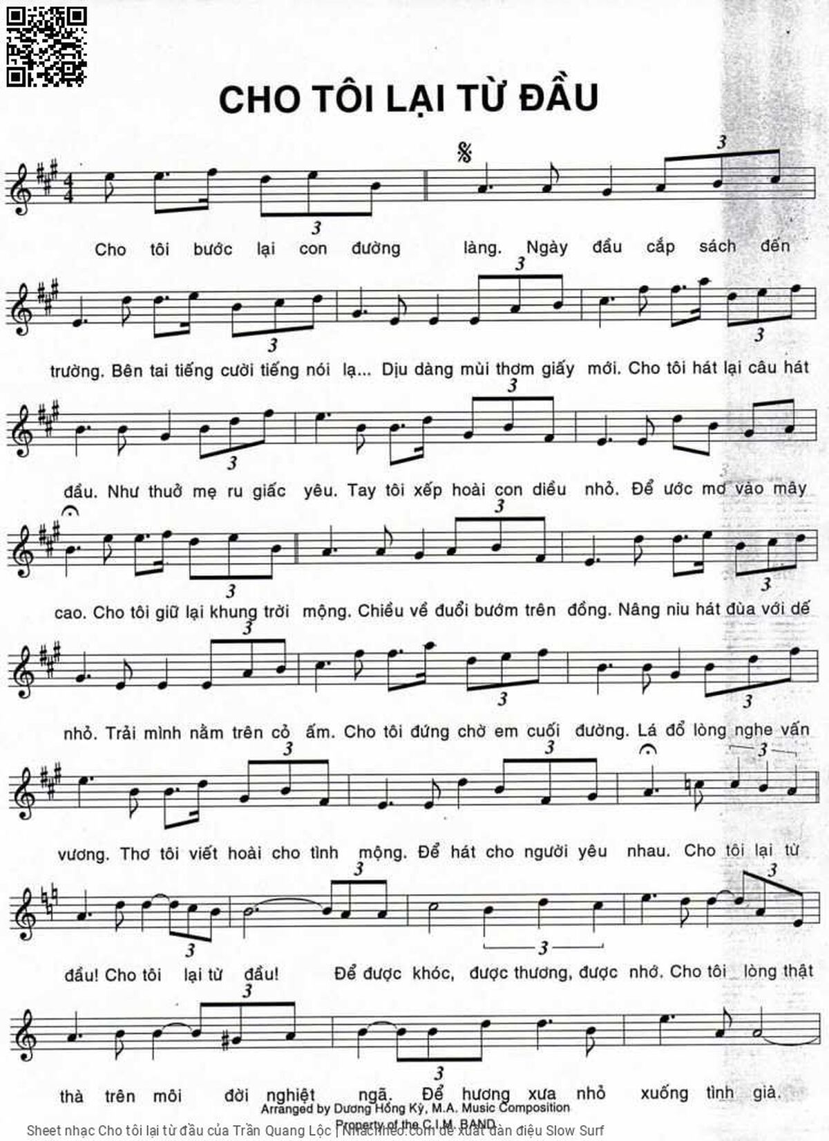 Trần Quang Lộc Cho tôi bước lại con đường làng ngày đầu cắp sách đến trường [PDF] [Sheet] [Lời H.A] [Mp4/Midi]