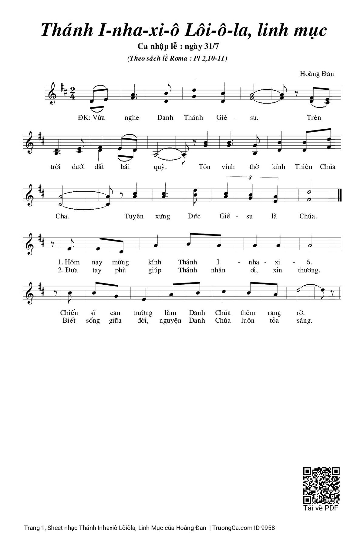 Các sheet PDF tương tự Thánh Inhaxiô Lôiôla, Linh Mục: