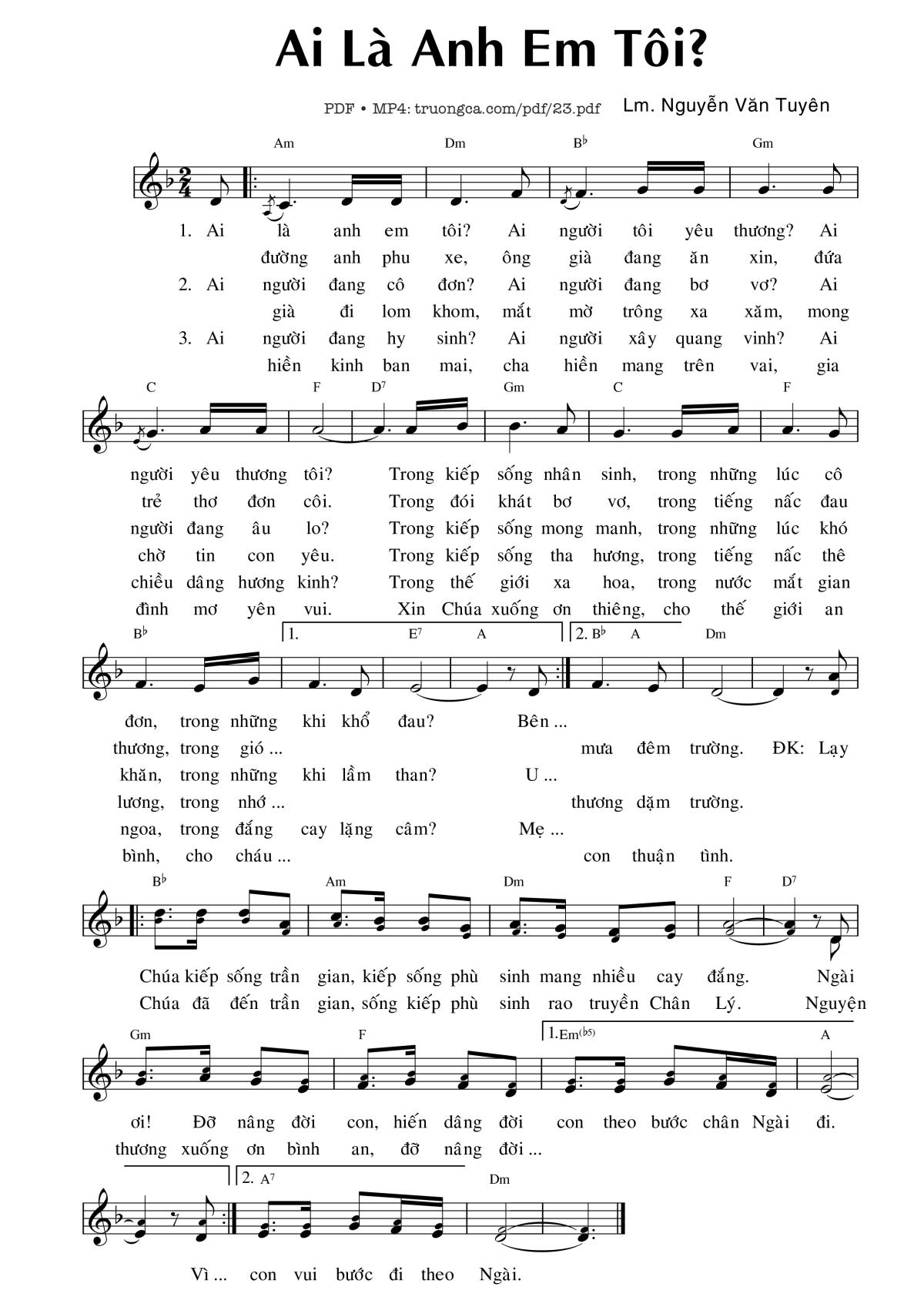 Lm. Nguyễn Văn Tuyên Ai là anh em tôi Ai người tôi yêu thương [PDF] [Sheet] [Lời H.A] [Mp4/Midi]