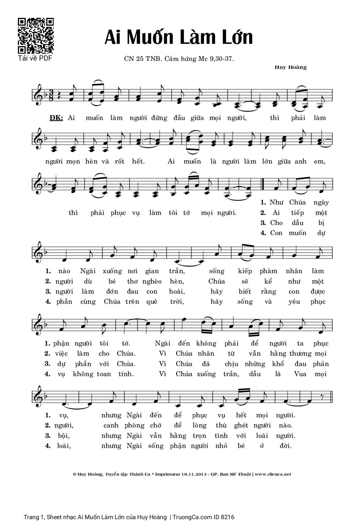 Huy Hoàng Ai muốn làm người đứng đầu giữa mọi người [PDF] [Sheet] [Lời H.A] [Mp4/Midi]