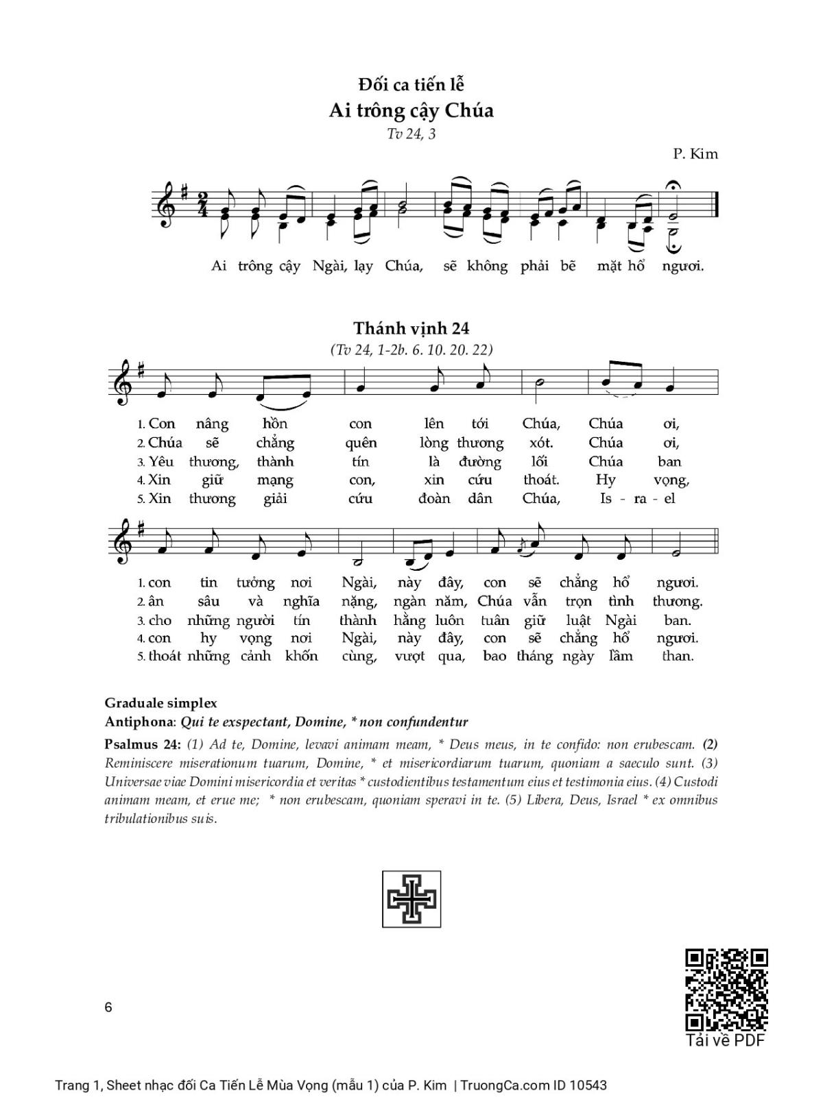 P. Kim Ai trông cậy Ngài lạy Chúa sẽ không phải bẽ mặt hổ ngươi [PDF] [Sheet] [Lời H.A] [Mp4/Midi]