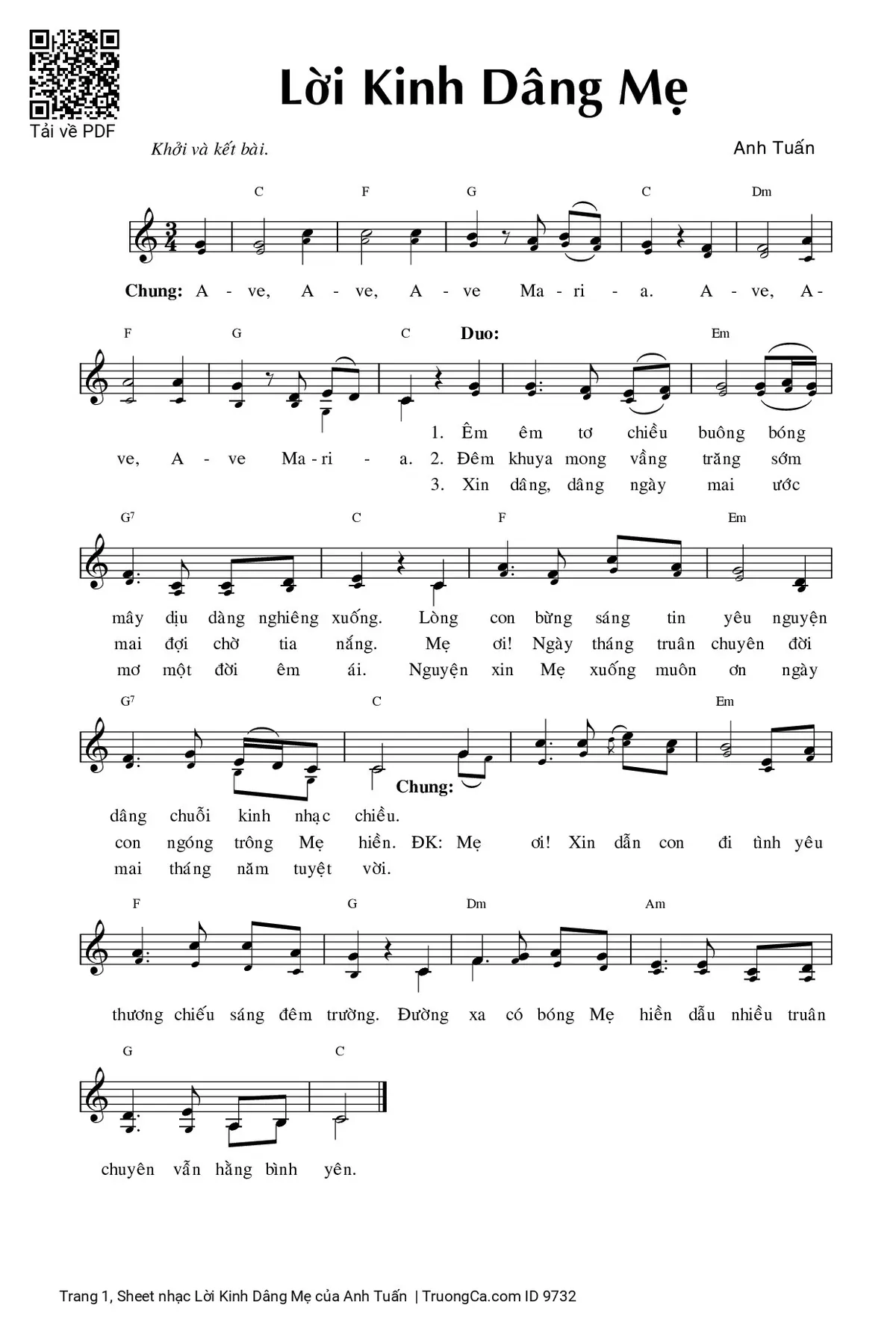 Các sheet PDF tương tự Lời Kinh Dâng Mẹ: