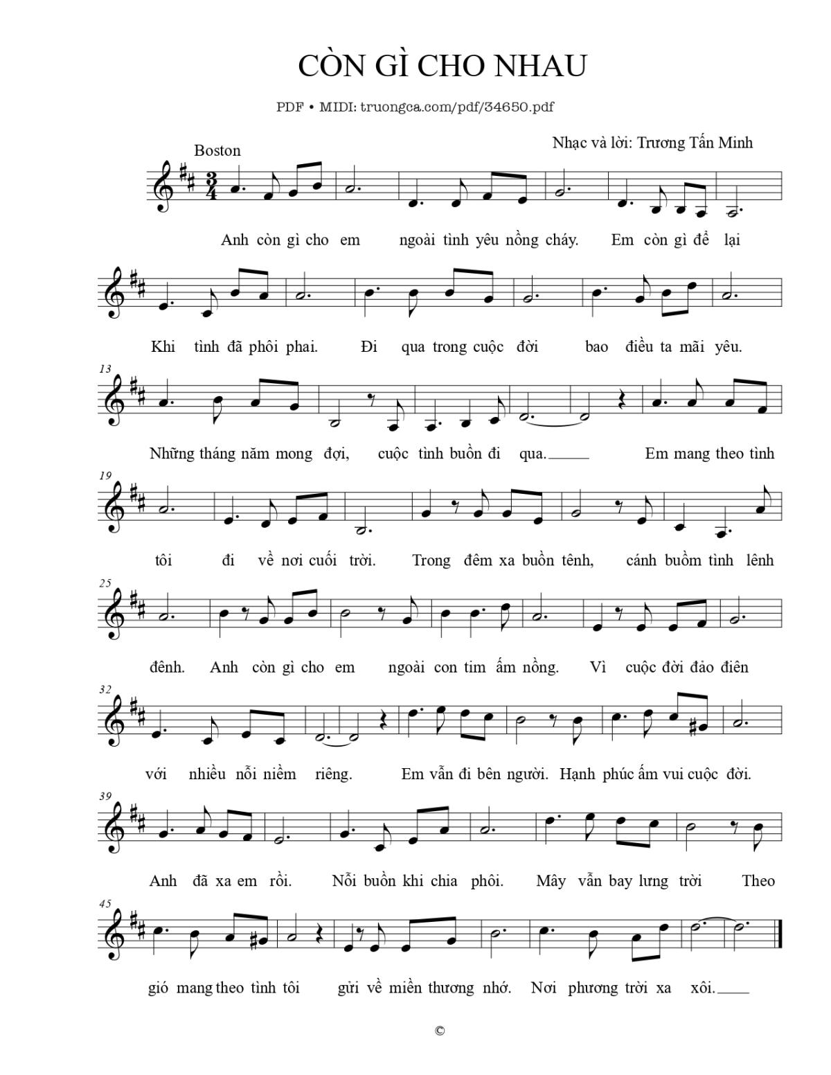 Trương Tấn Minh Anh còn gì cho em Ngoài tình yêu nồng cháy [PDF] [Sheet] [Lời H.A] [Mp4/Midi]
