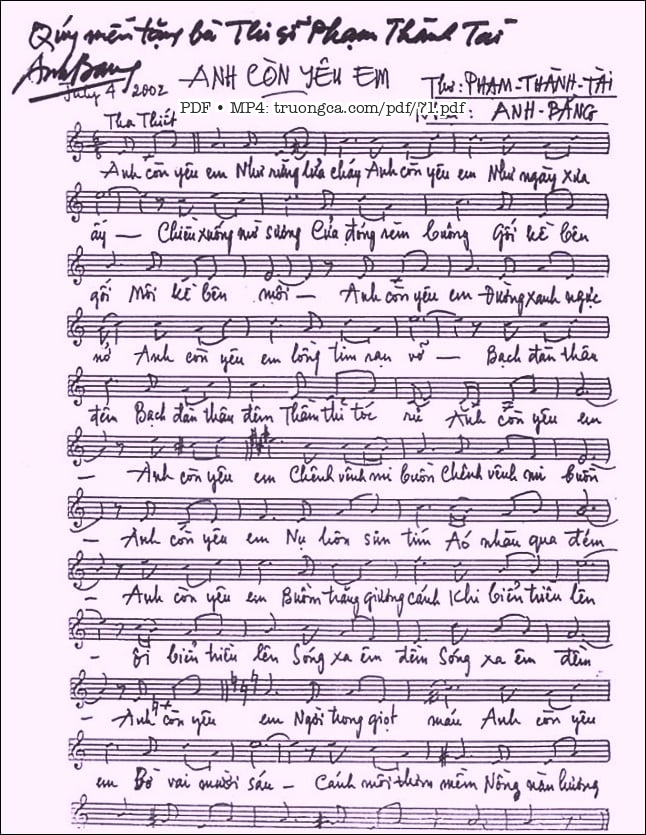 Anh Bằng Anh còn yêu em như rừng lửa cháy Anh còn yêu em như ngày xưa ấy [PDF] [Sheet] [Lời H.A] [Mp4/Midi]