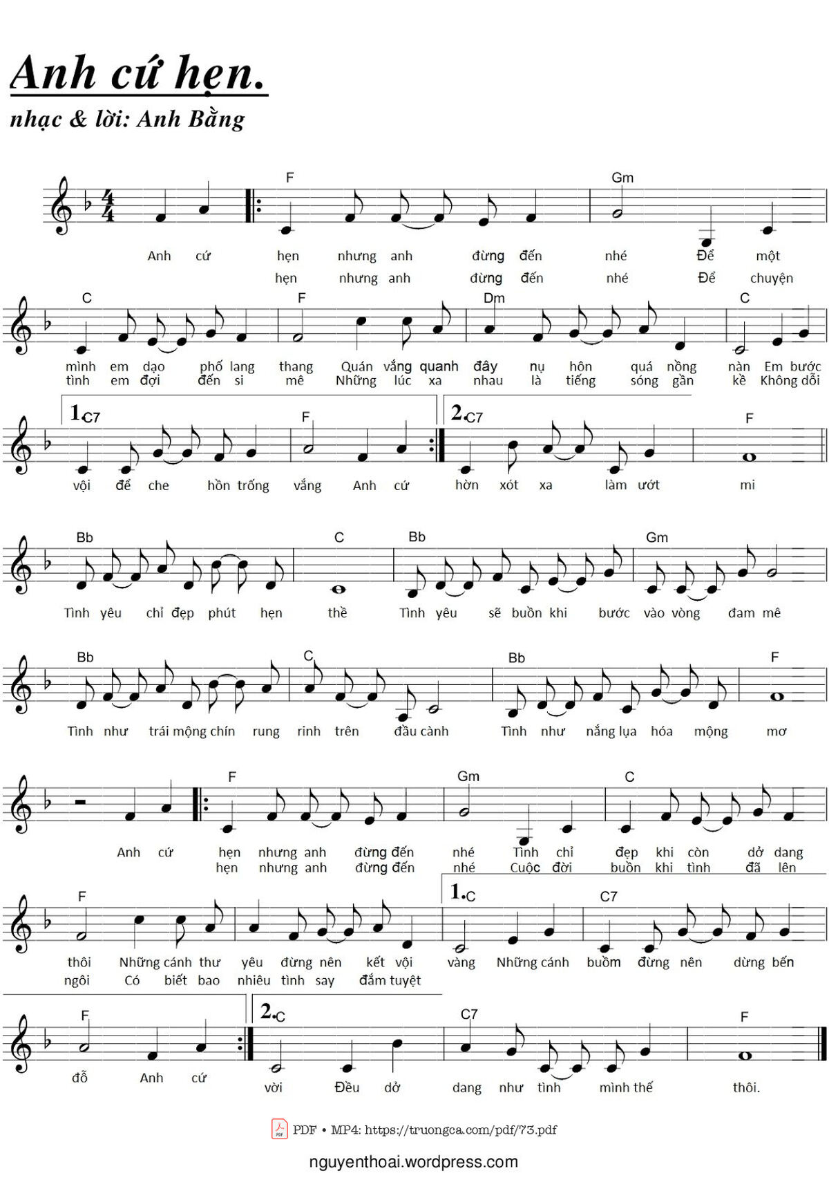 Anh Bằng Anh cứ hẹn nhưng anh đừng đến nhé Để một mình em dạo phố lang thang [PDF] [Sheet] [Lời H.A] [Mp4/Midi]