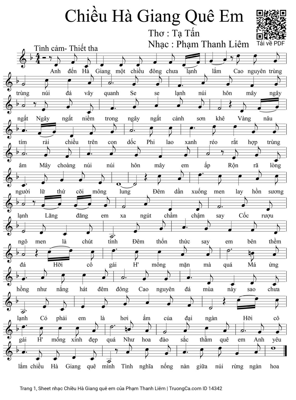 Phạm Thanh Liêm Anh đến Hà Giang một chiều đông chưa lạnh lắm [PDF] [Sheet] [Lời H.A] [Mp4/Midi]