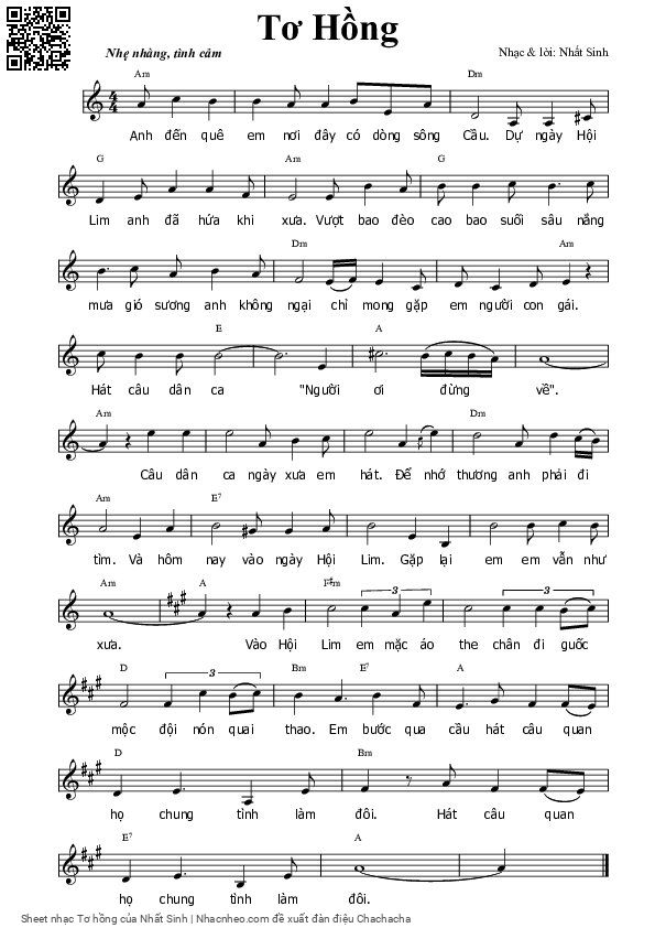 Nhất Sinh Anh đến quê em nơi đây có dòng sông Cầu [PDF] [Sheet] [Lời H.A] [Mp4/Midi]