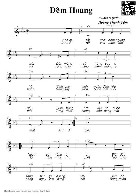 Hoàng Thanh Tâm Anh đi rồi cho đêm ngừng trôi Đời mộng vỡ trăng sao ơ hờ [PDF] [Sheet] [Lời H.A] [Mp4/Midi]