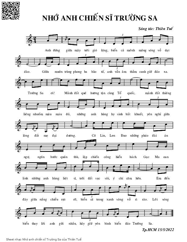 Các sheet PDF tương tự Nhớ anh chiến sĩ Trường Sa: