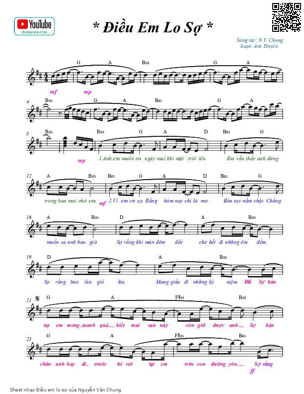 Phần nghe hát Điều em lo sợ (Nguyễn Văn Chung) được nhúng từ Youtube, Musescore hoặc link ngoài và chịu sự kiểm soát bản quyền của bên thứ ba đó, vì vậy có thể bị xóa hoặc chèn quảng cáo bất kỳ lúc nào. Nếu bạn không nghe - xem được ca sĩ hát tức là đã bị Youtube hoặc Musescore kiểm soát.