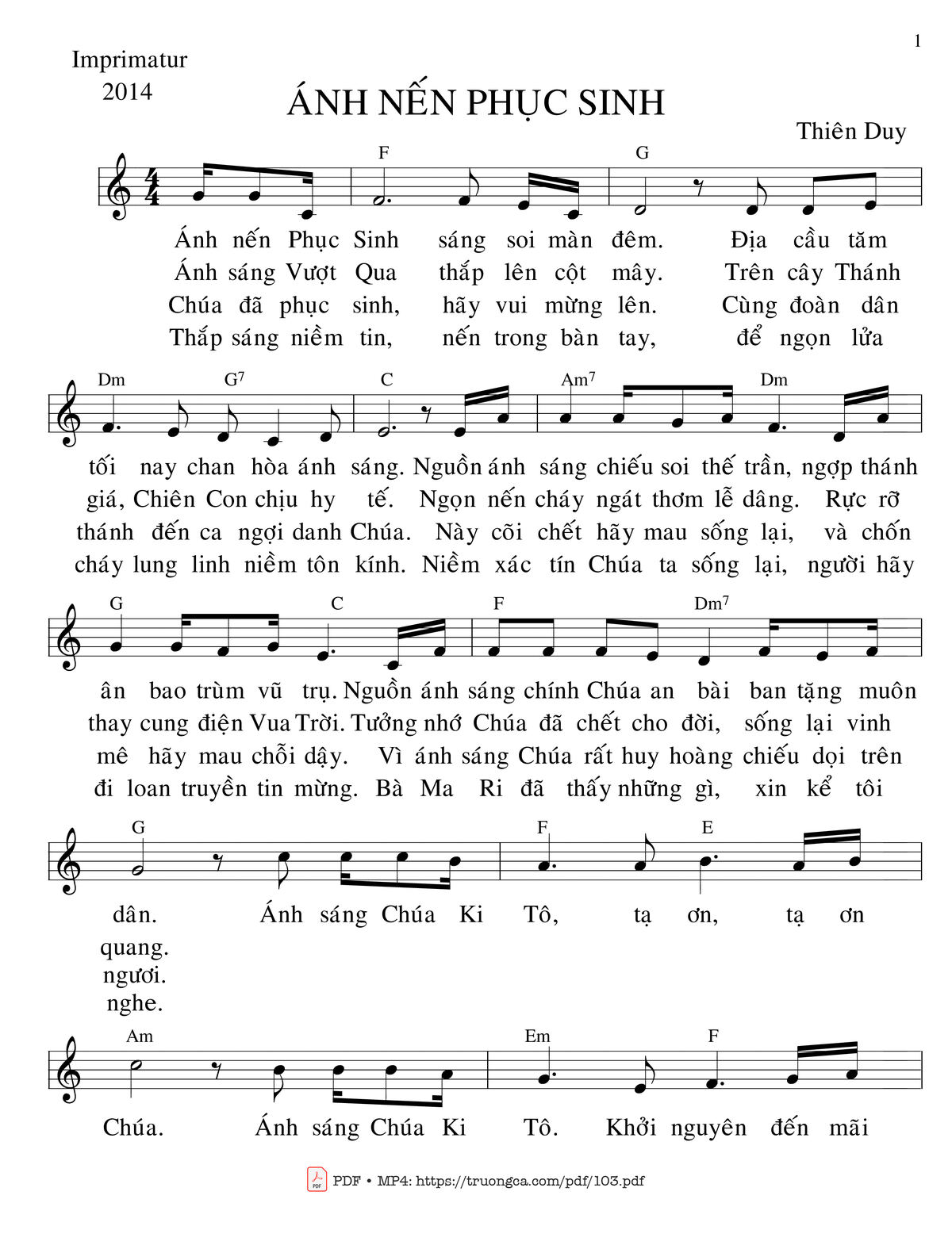 Thiên Duy Ánh nến phục sinh sáng soi màn đêm Địa cầu tăm tối nay chan hòa ánh sáng [PDF] [Sheet] [Lời H.A] [Mp4/Midi]