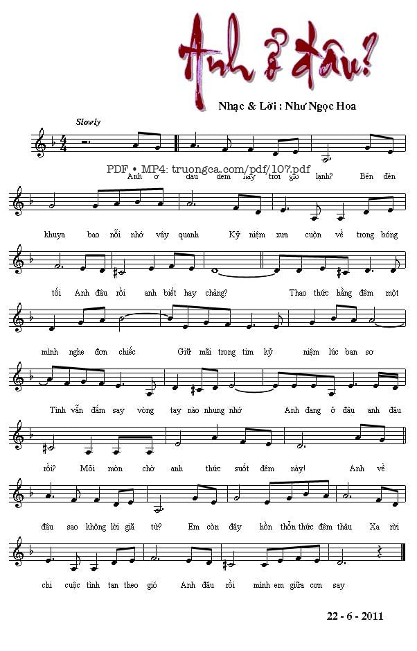 Như Ngọc Hoa Anh ở đâu đêm nay trời gió lạnh [PDF] [Sheet] [Lời H.A] [Mp4/Midi]