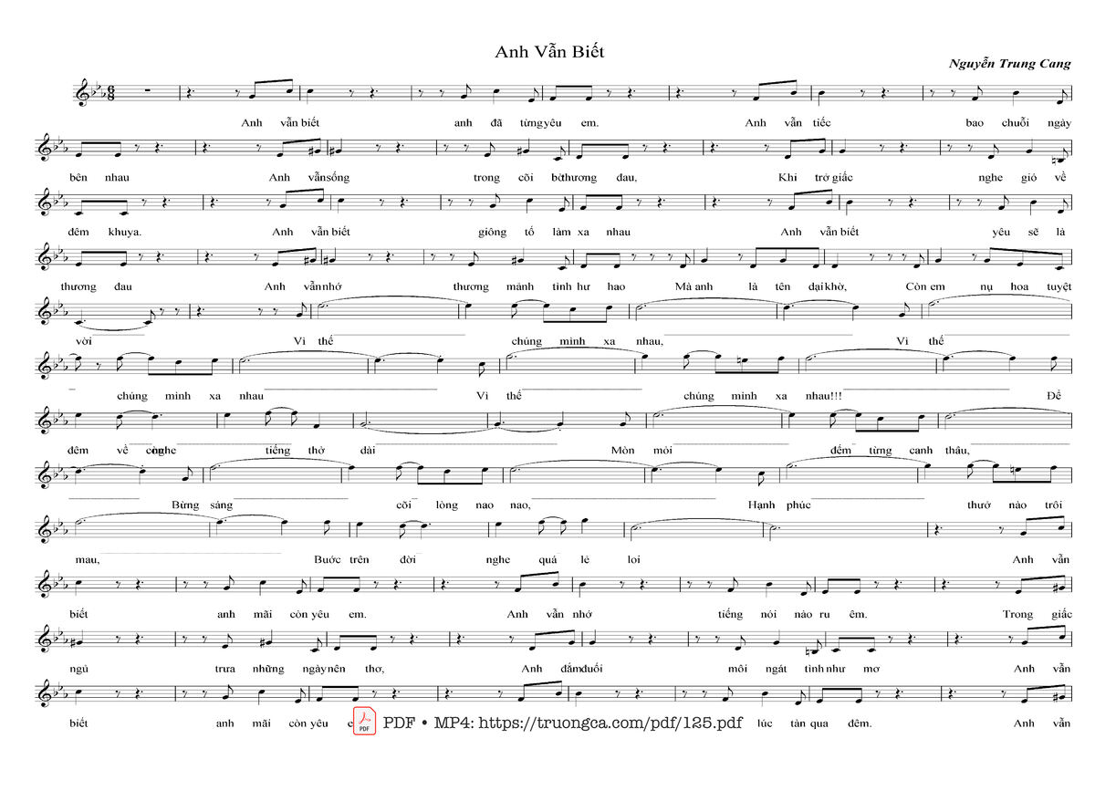 Nguyễn Trung Cang Anh vẫn biết anh đã từng yêu em anh vẫn tiếc bao chuỗi ngày bên nhau [PDF] [Sheet] [Lời H.A] [Mp4/Midi]